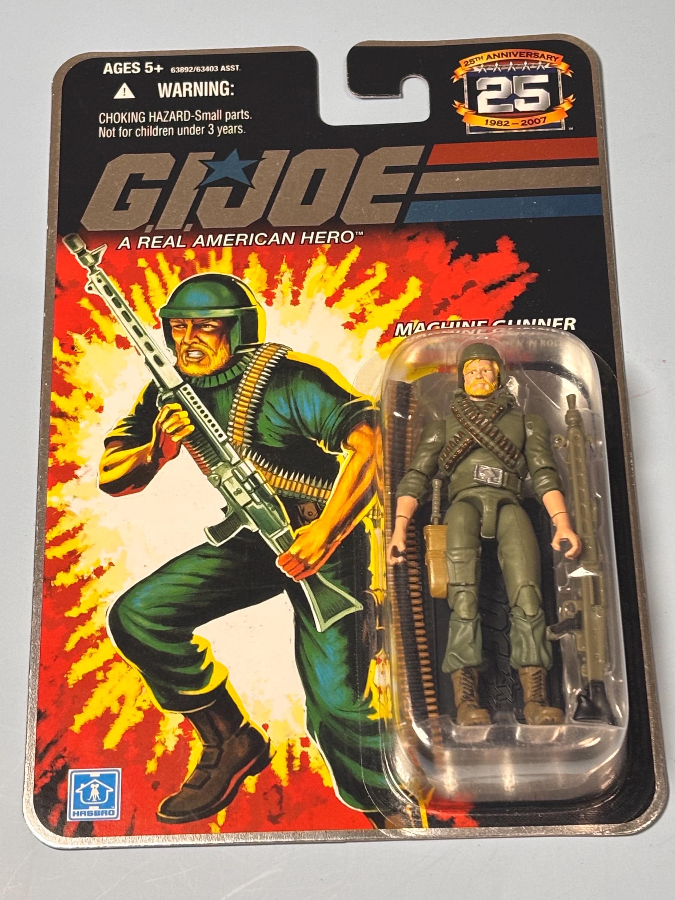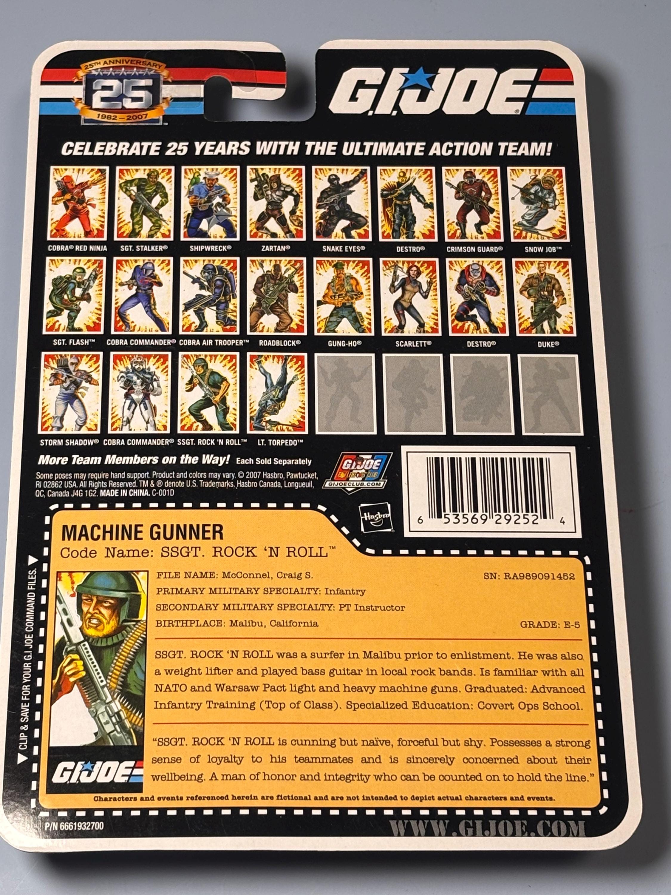 VISIT jaxinabox.com FOR ALL OUR LISTINGS!GI Joe 25th Anniversary Machine Gunner Rock 'N Roll Hasbro Foil Action Figure