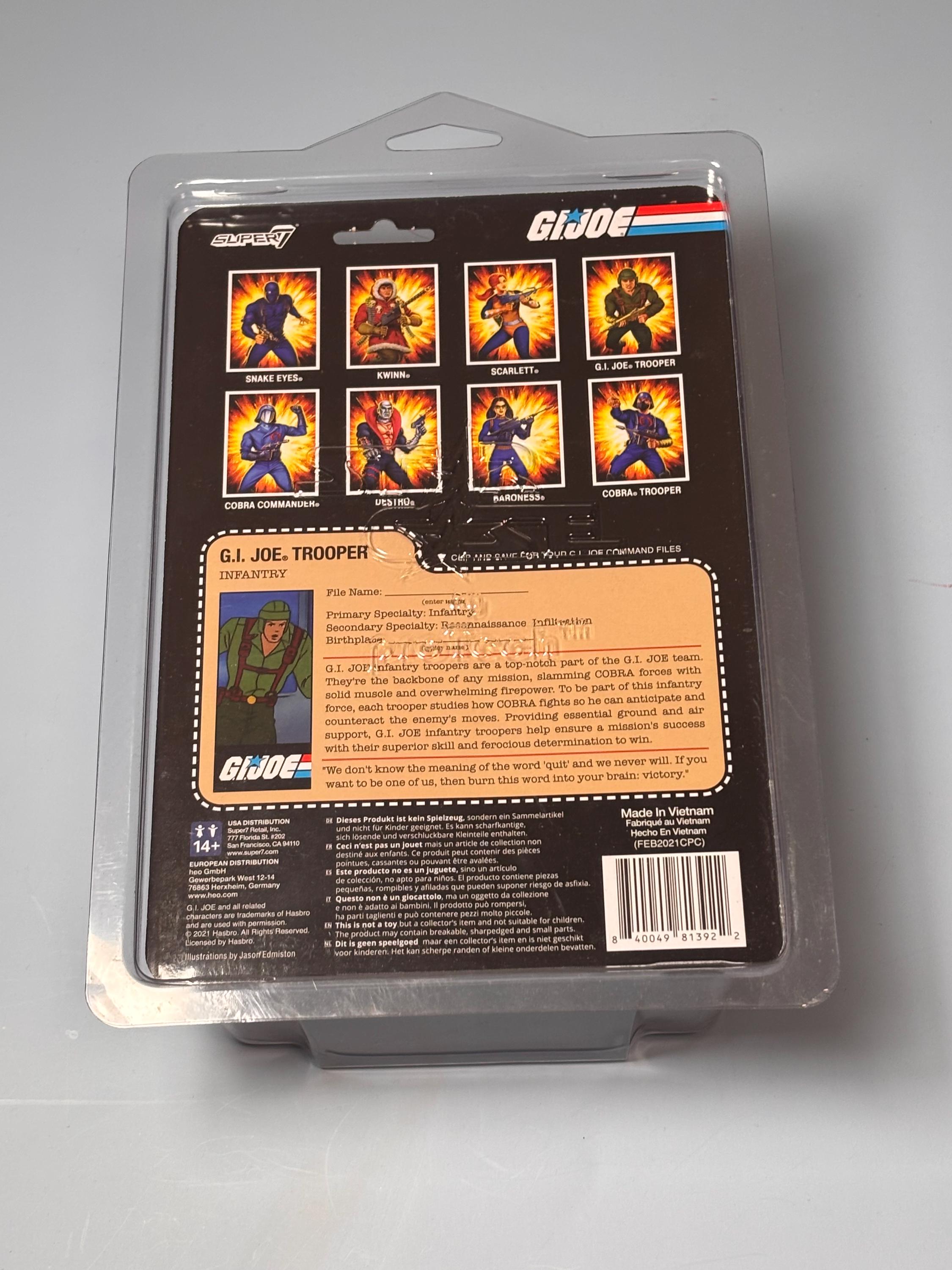 VISIT jaxinabox.com FOR ALL OUR LISTINGS!GI Joe GI Trooper Infantry Pink Camo Action Figure 3.75" Super7 ReAction mint w/ Case