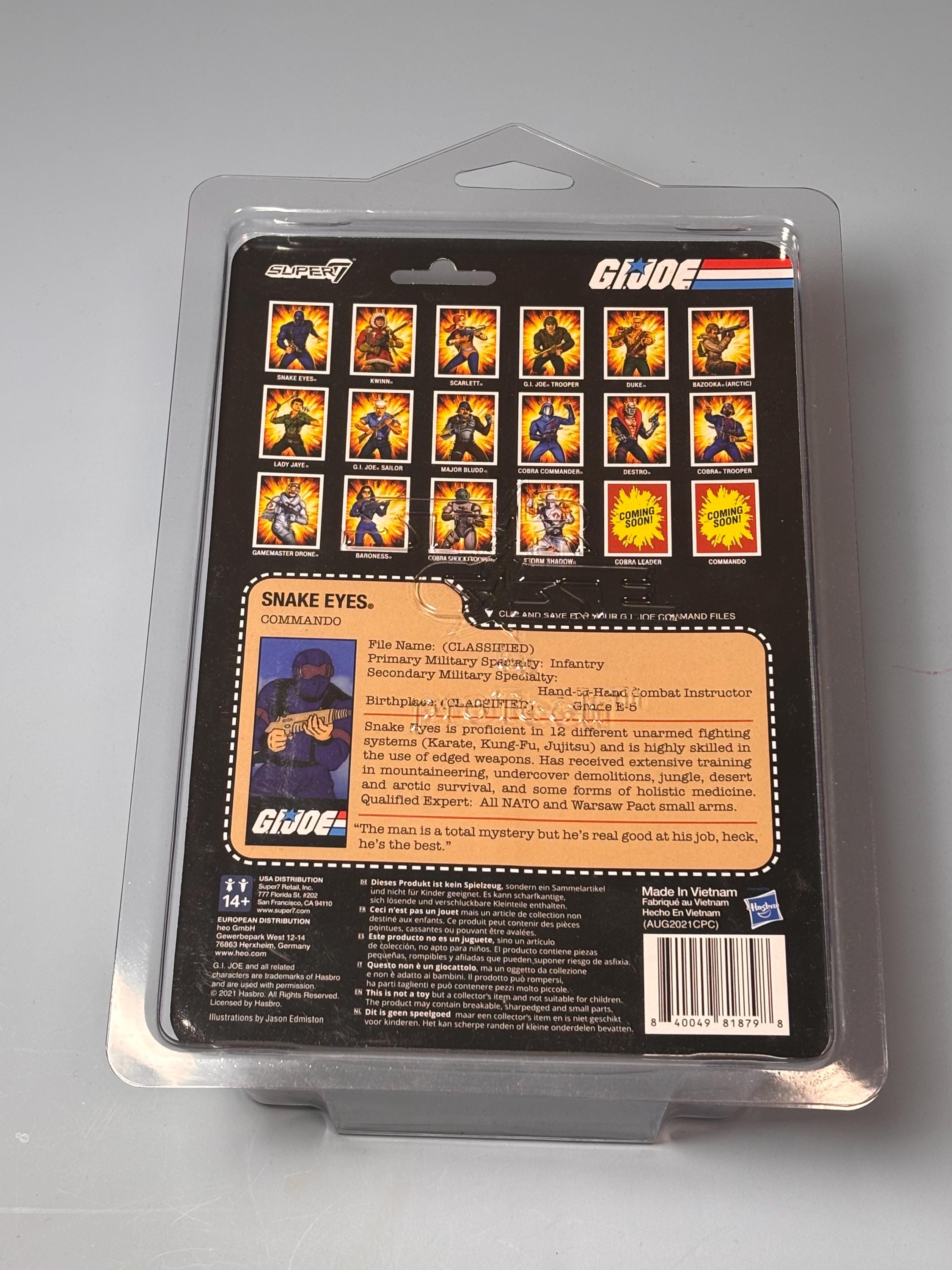 VISIT jaxinabox.com FOR ALL OUR LISTINGS!Super7 ReAction GI JOE Snake Eyes Secret Service 3.75" Action Figure Mint with Case