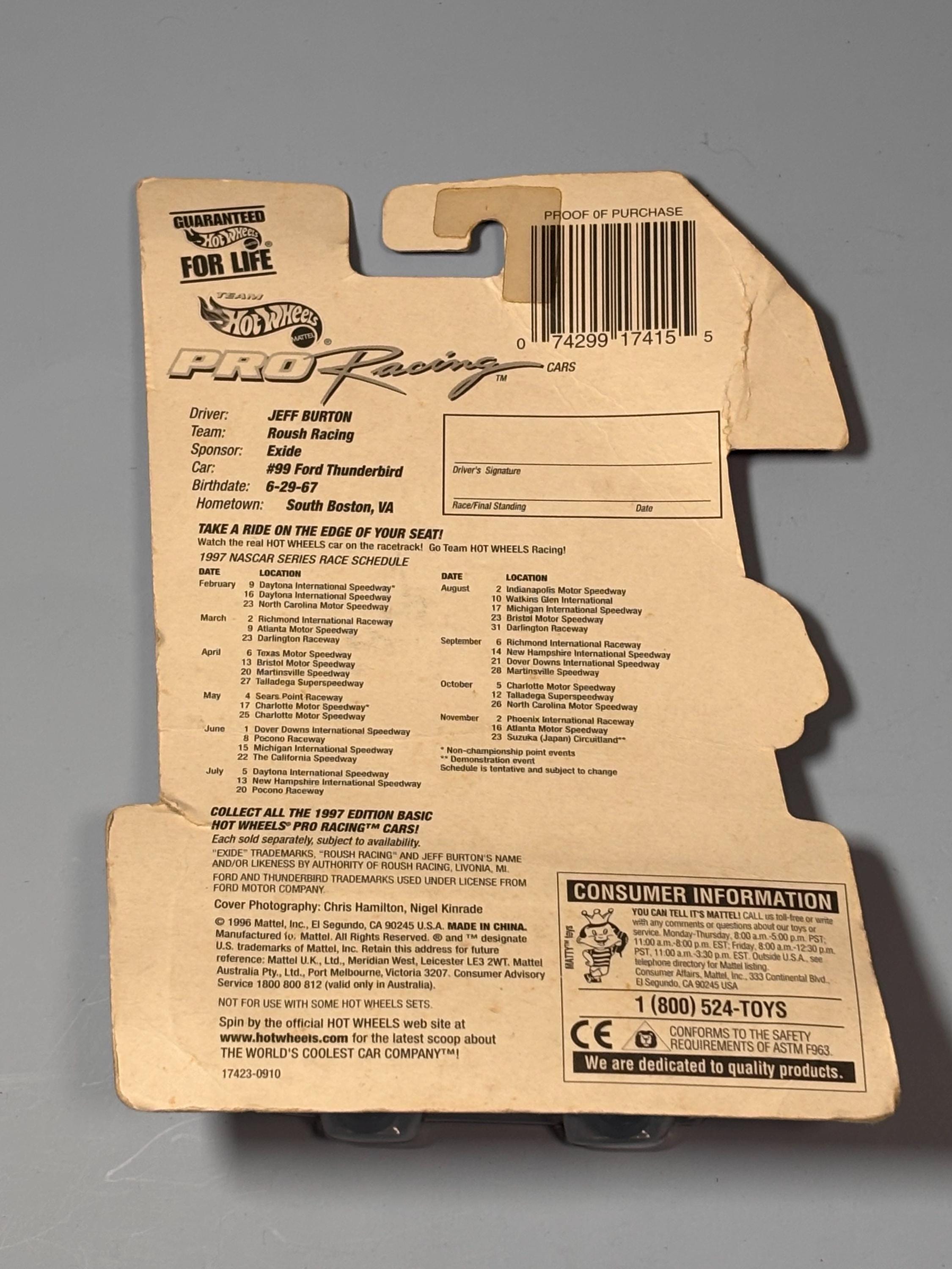 VISIT jaxinabox.com FOR ALL OUR LISTINGS!1997 Edition Team Hot Wheels Pro Racing Jeff Burton #99 Die Cast Race Car Exide