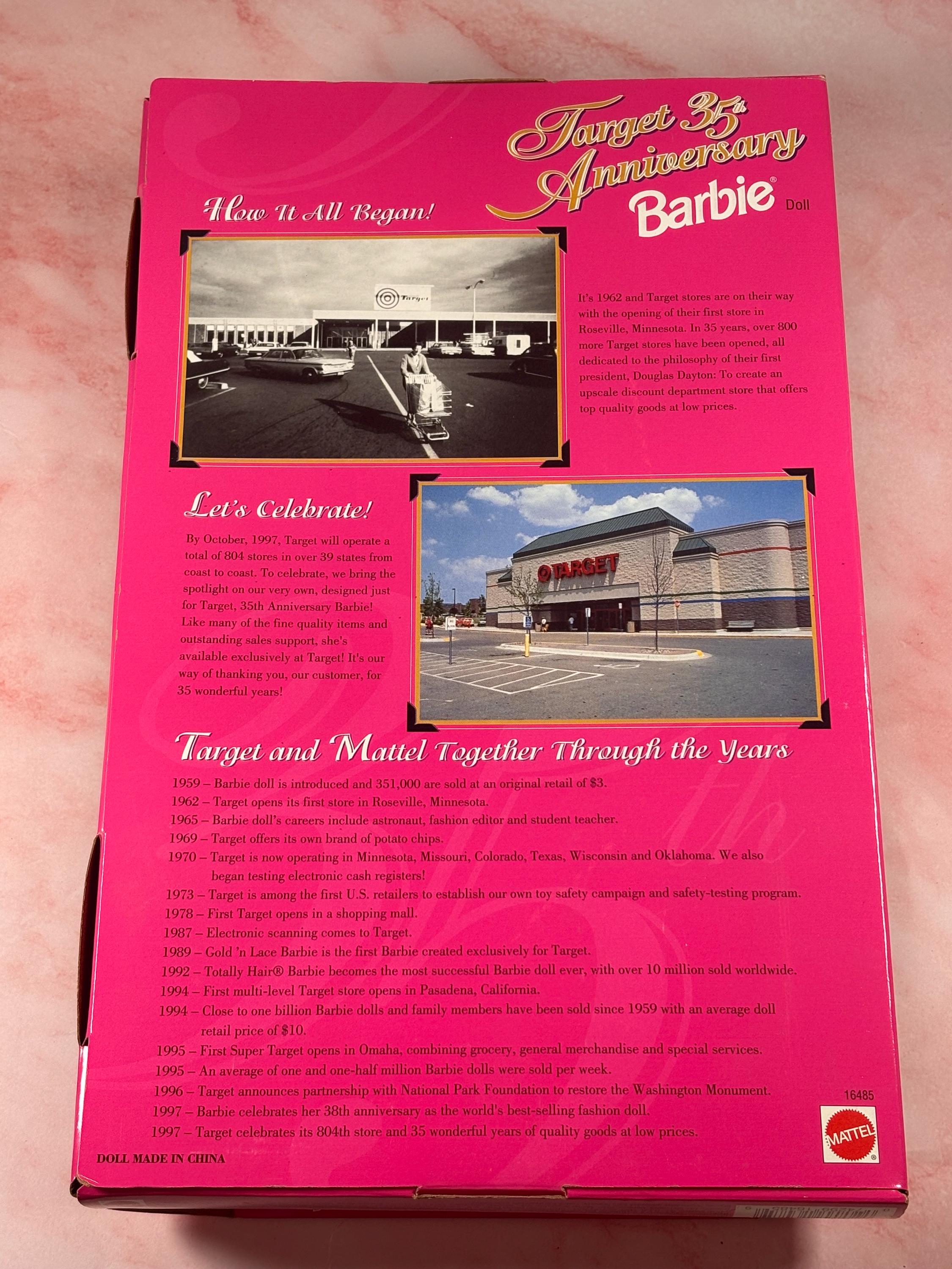 VISIT jaxinabox.com FOR ALL OUR LISTINGS!1997 Target 35th Anniversary Barbie Doll- Special Edition- Mattel #16485- New