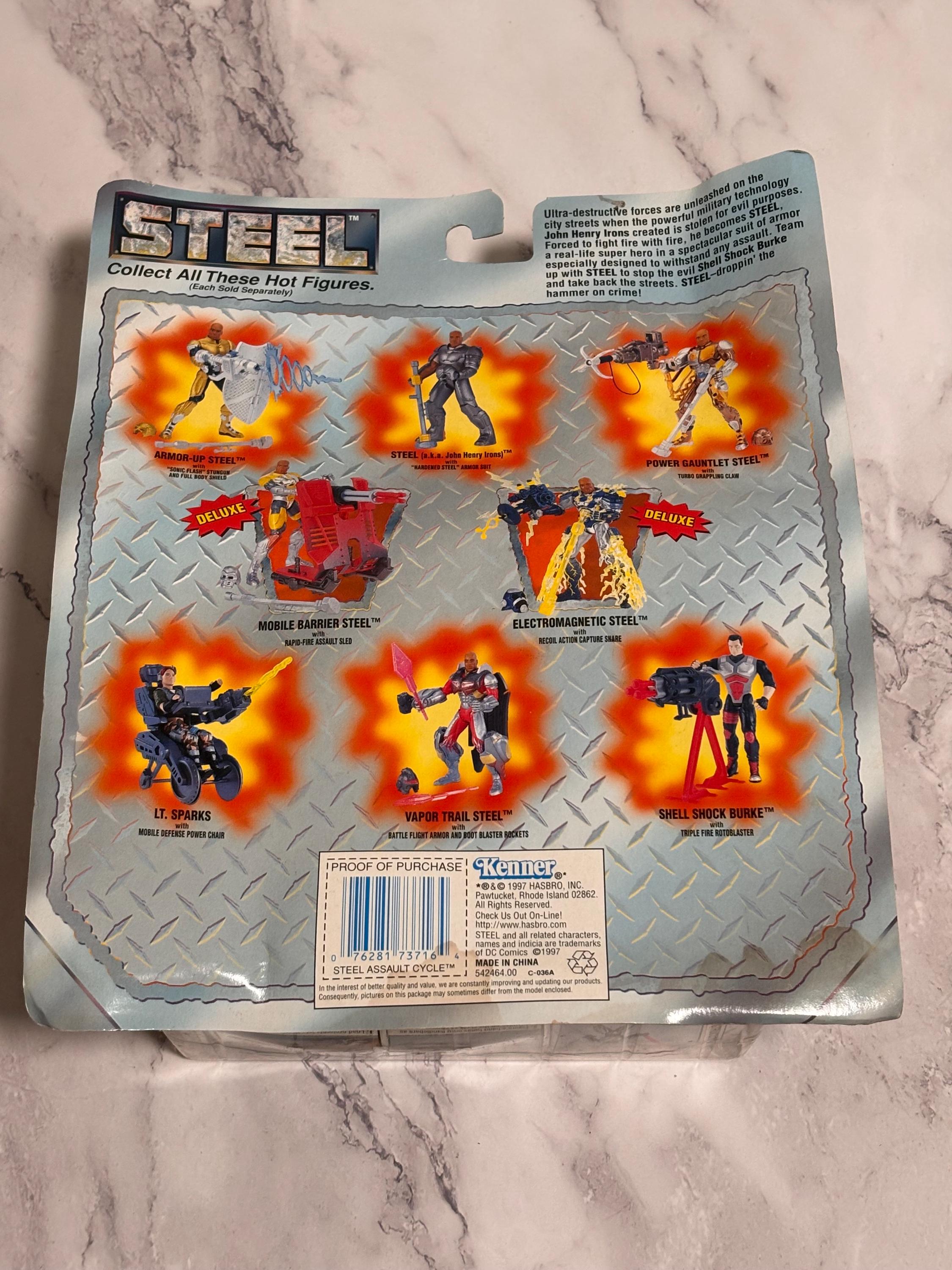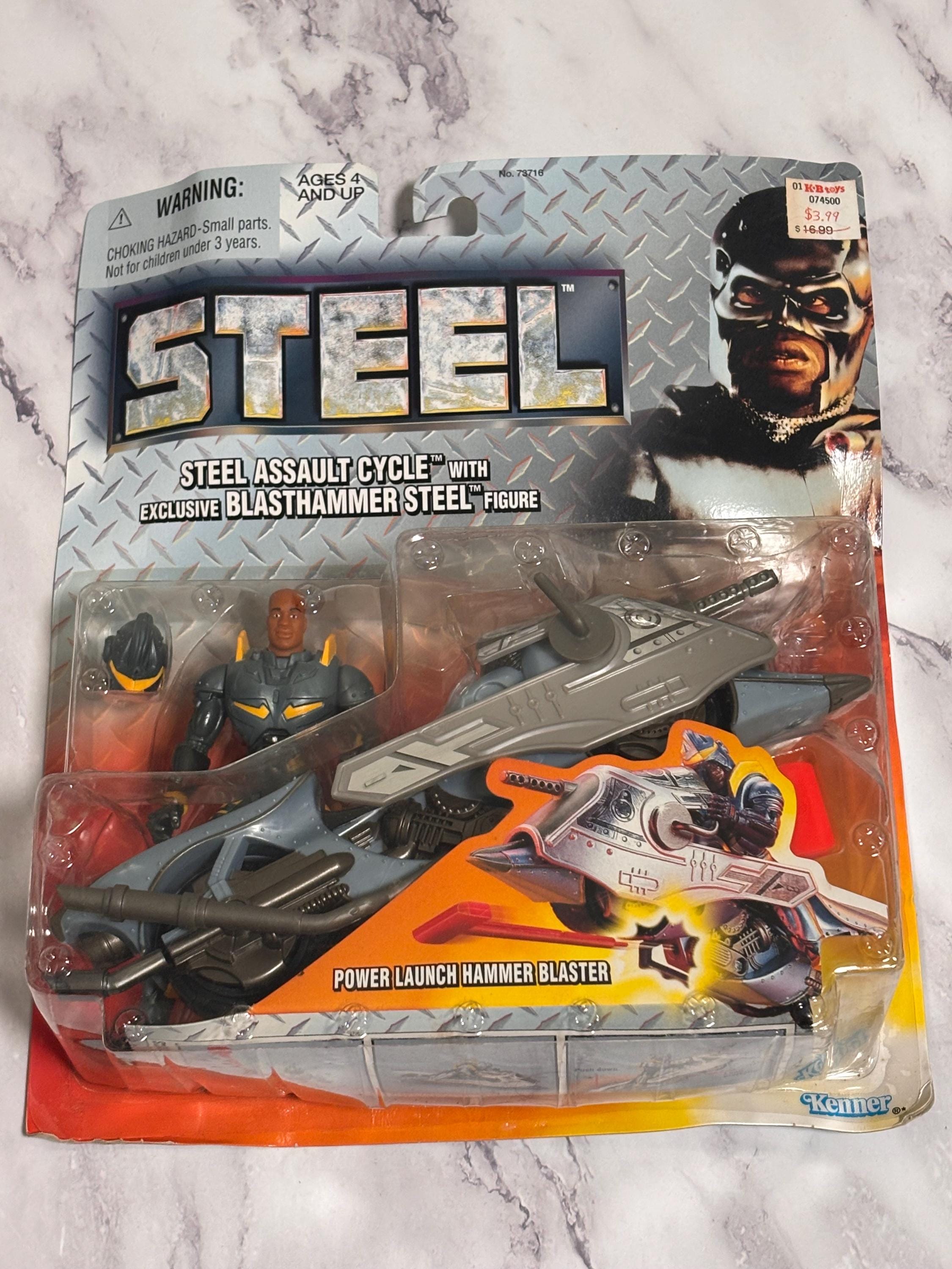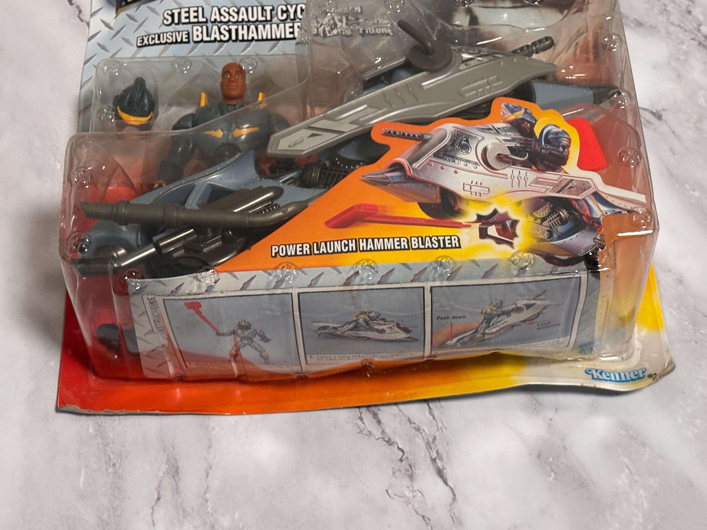 VISIT jaxinabox.com FOR ALL OUR LISTINGS!1997 Vintage Kenner Steel Assault Cycle & Blast Hammer Steel Figure NEW