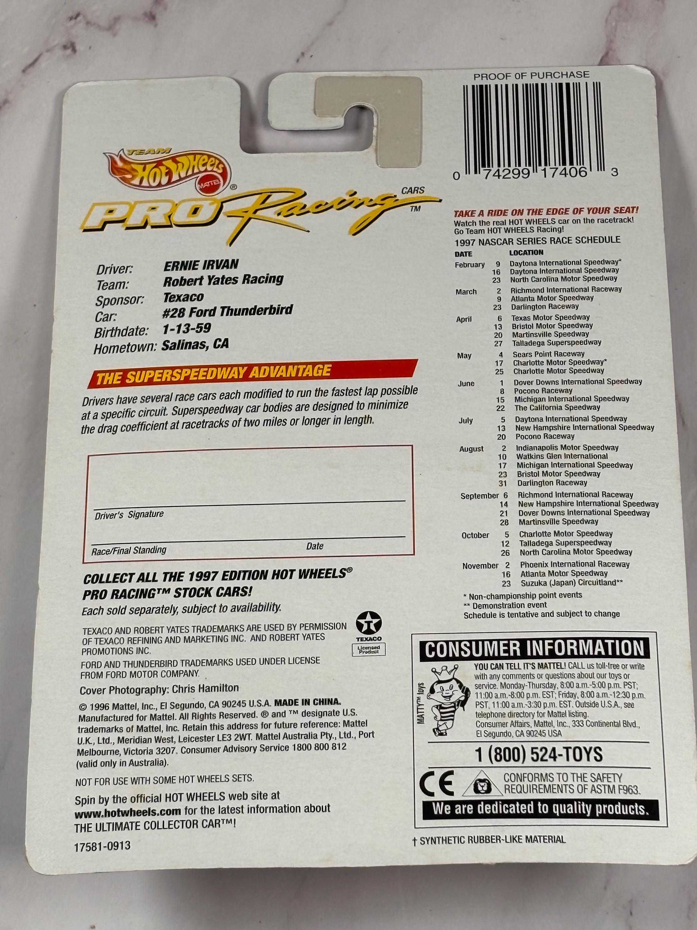 VISIT jaxinabox.com FOR ALL OUR LISTINGS!Team Hot Wheels Pro Racing 1st Edition Ernie Irvan 1997 1/64 Ford Thunderbird