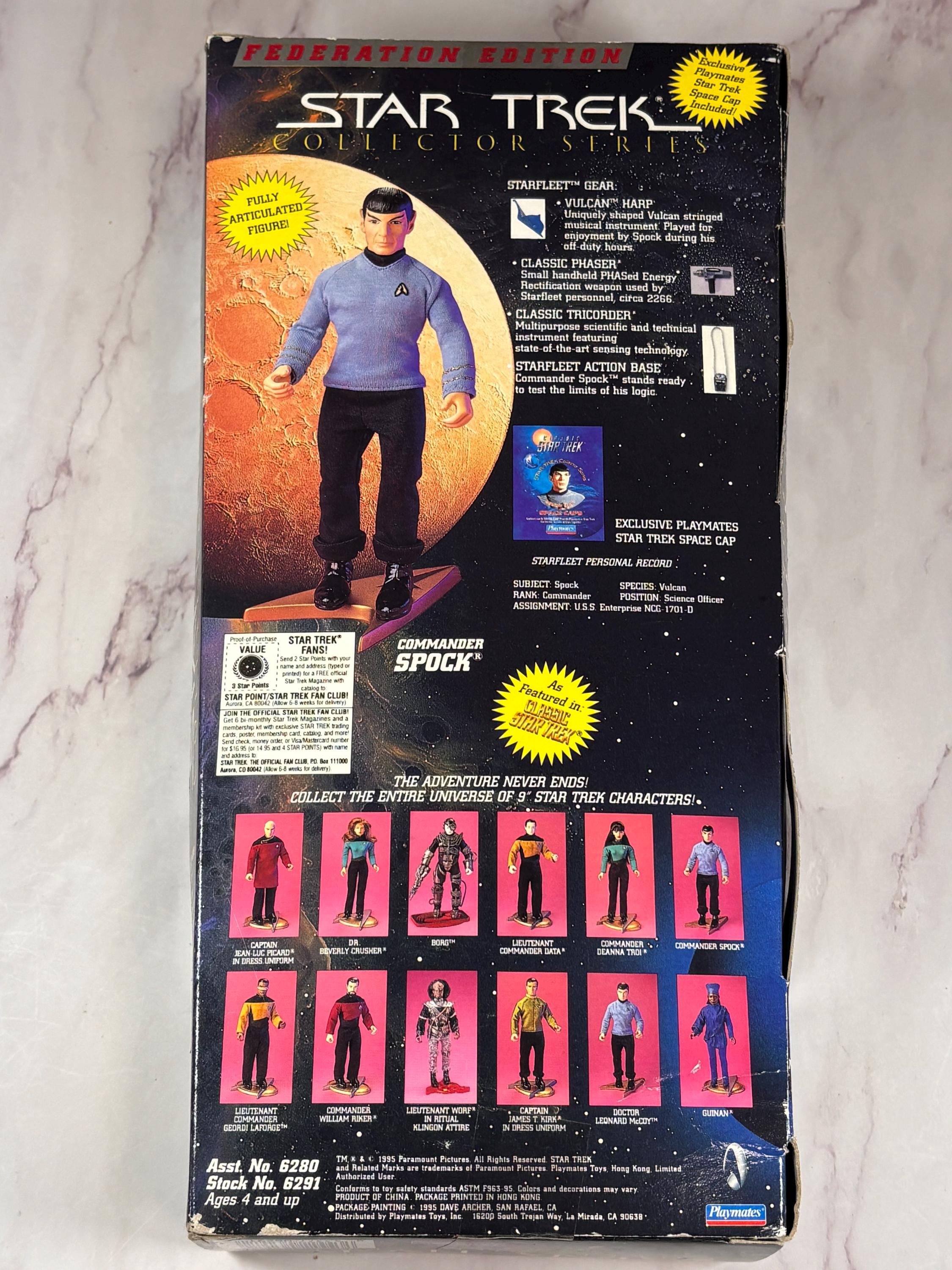 VISIT jaxinabox.com FOR ALL OUR LISTINGS!Playmates Star Trek Collector Series Action Figure Commander Spock 1995 New 10”