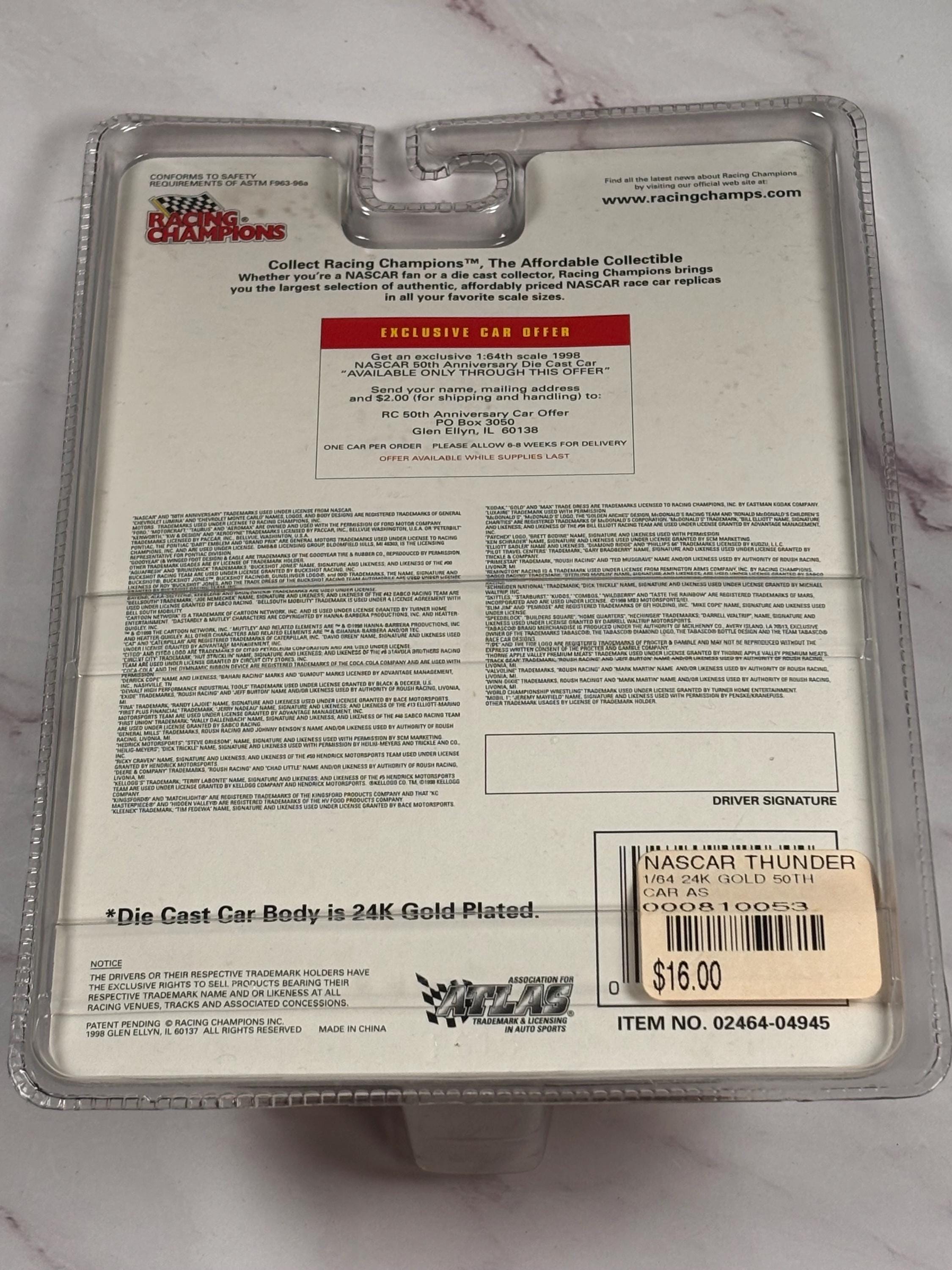 VISIT jaxinabox.com FOR ALL OUR LISTINGS!Racing Champions 24K Gold Plated Series NASCAR 50th Anniversary #8 1:64 1998 Circuit City