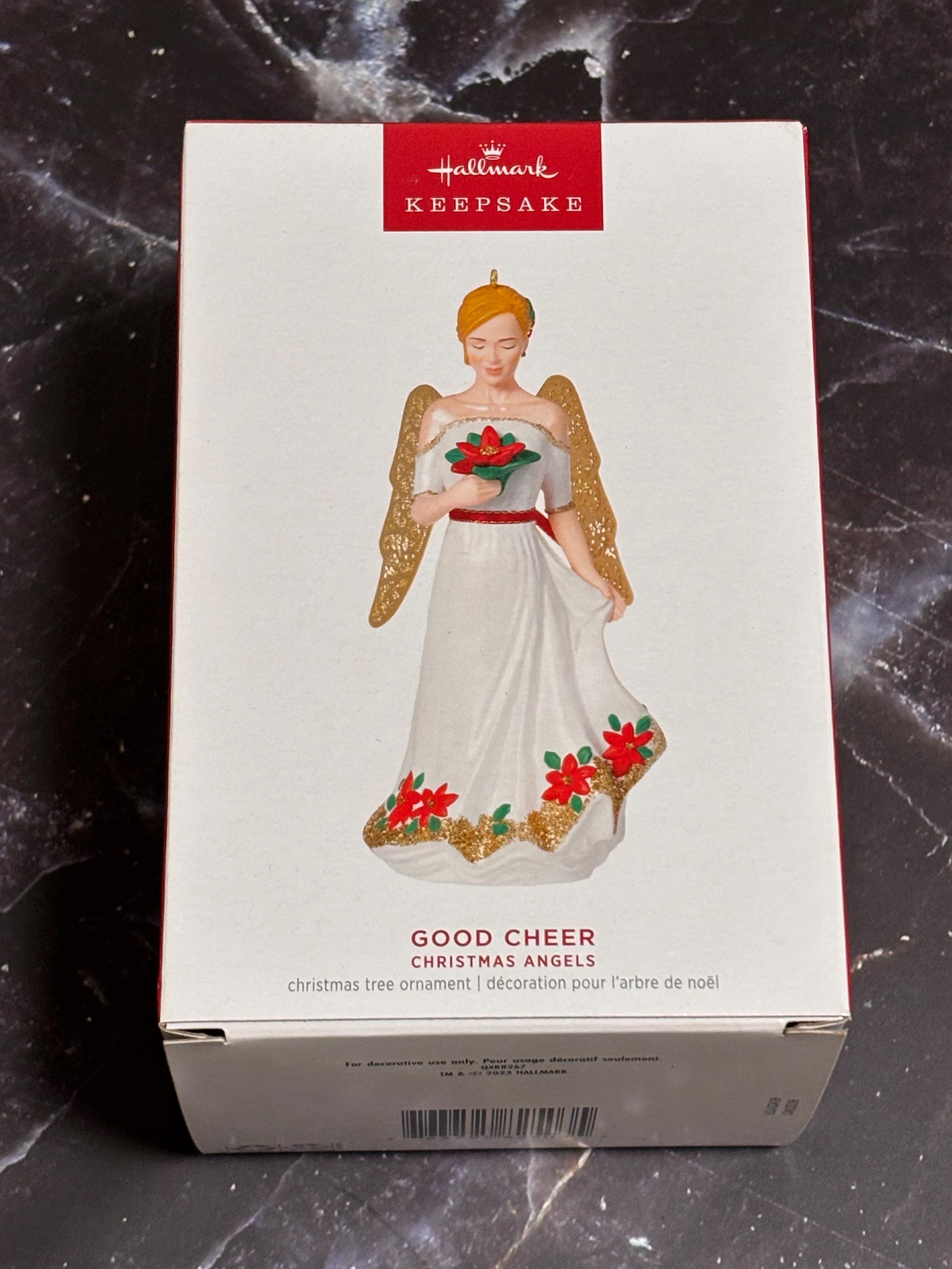 VISIT jaxinabox.com FOR ALL OUR LISTINGS!Hallmark Keepsake Good Cheer Christmas Angel 6th 2023 New Poinsettia Gold