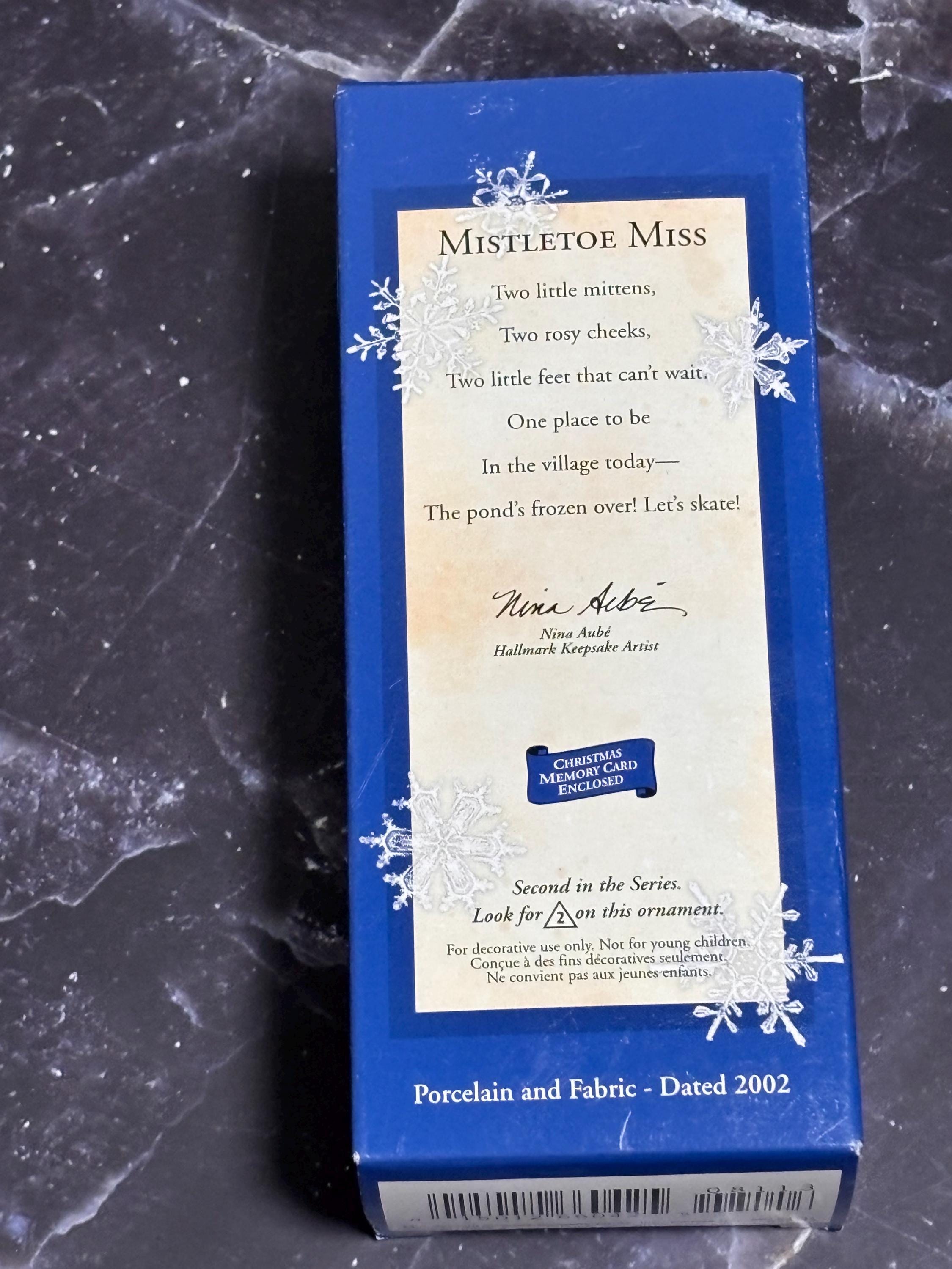 VISIT jaxinabox.com FOR ALL OUR LISTINGS!Vintage Hallmark Mistletoe Miss Porcelain Doll 2nd In Series Ornament 2002 New