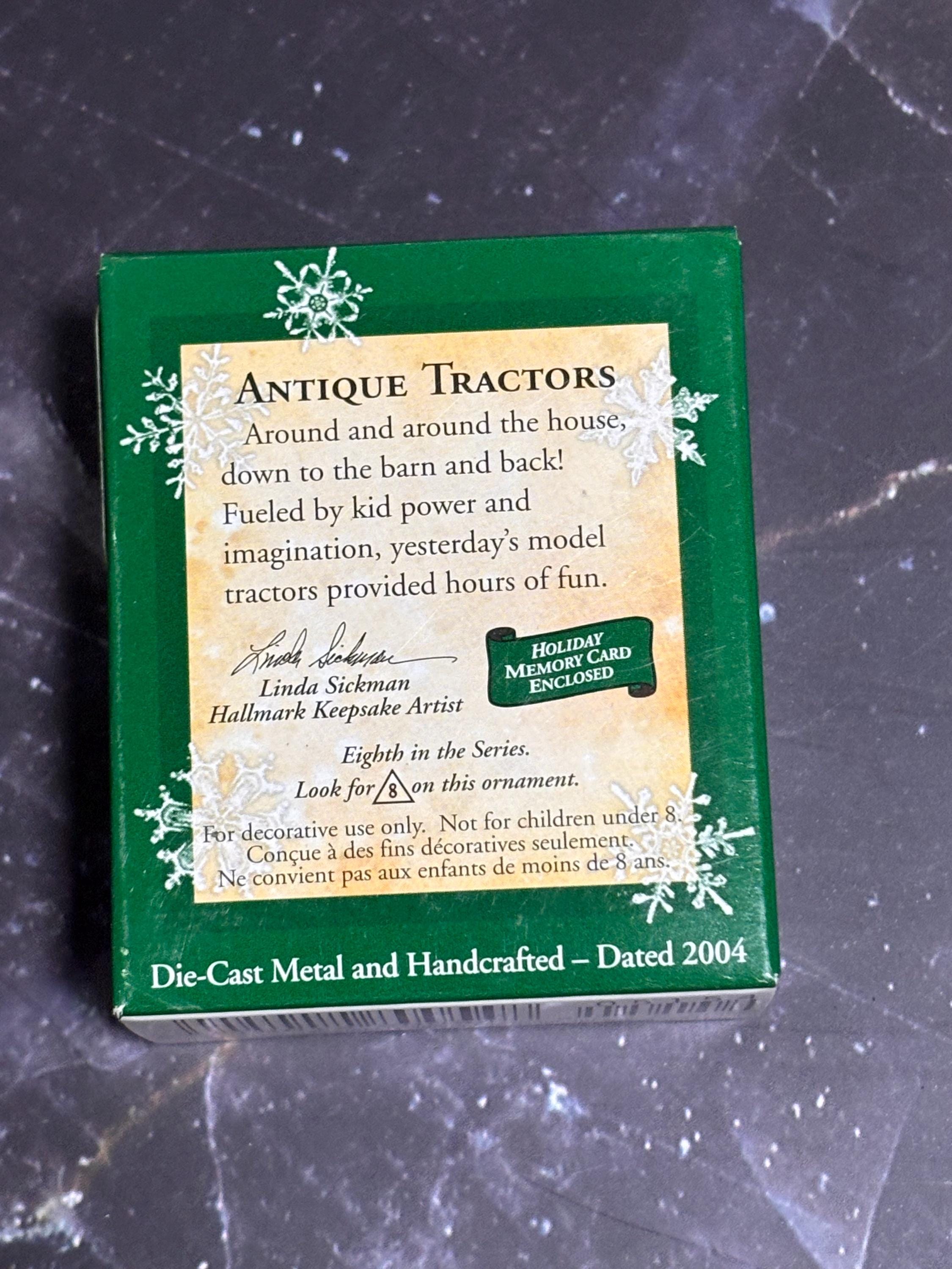 VISIT jaxinabox.com FOR ALL OUR LISTINGS!Hallmark Keepsake Antique Tractors 2004 Miniature Collector's Series Ornament 8th in Series