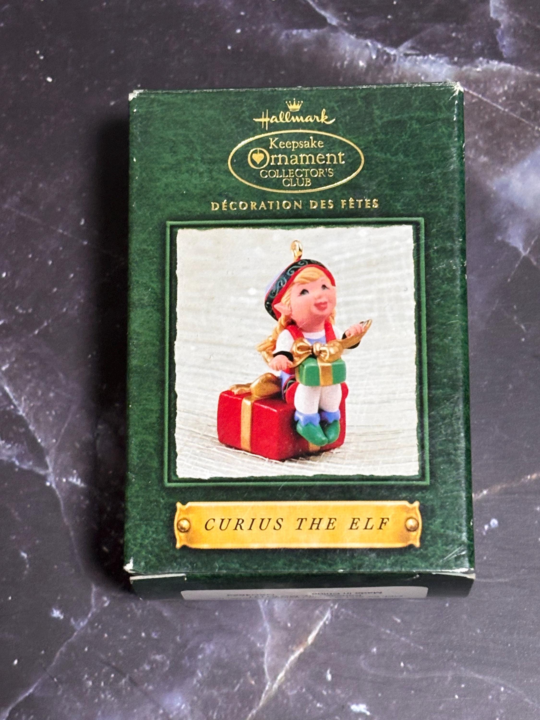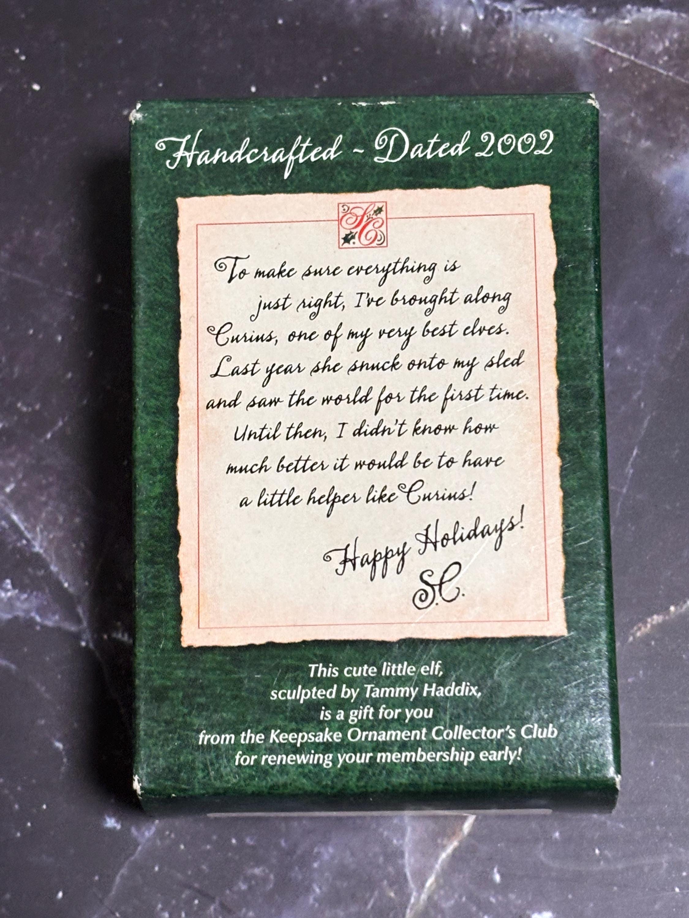VISIT jaxinabox.com FOR ALL OUR LISTINGS!Hallmark Keepsake 2002 Curius the Elf Keepsake Ornament Club Exclusive New