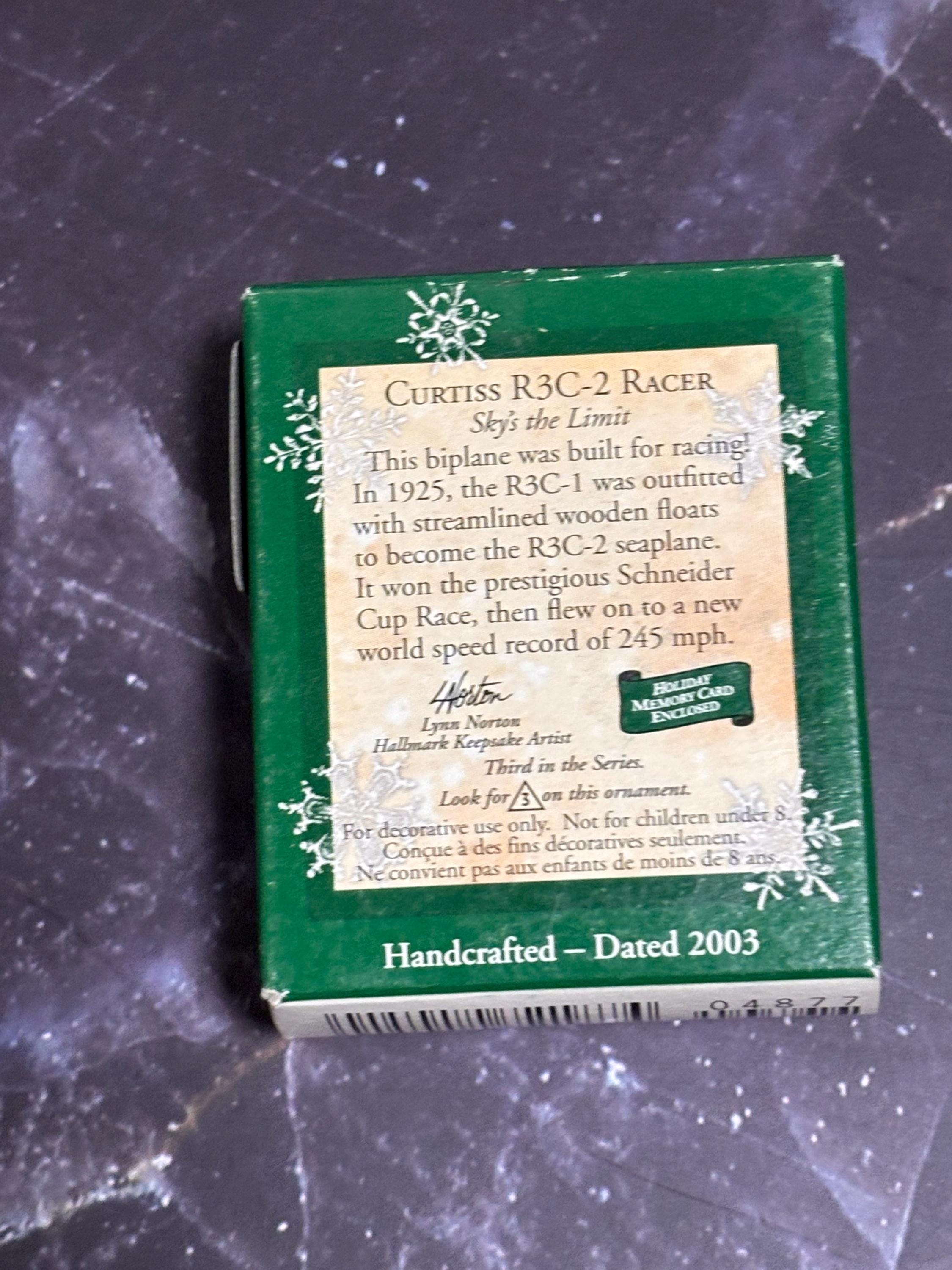 VISIT jaxinabox.com FOR ALL OUR LISTINGS!2003 Hallmark Keepsake Miniature Ornament Curtiss R3C-2 Racer Skys the Limit 3rd