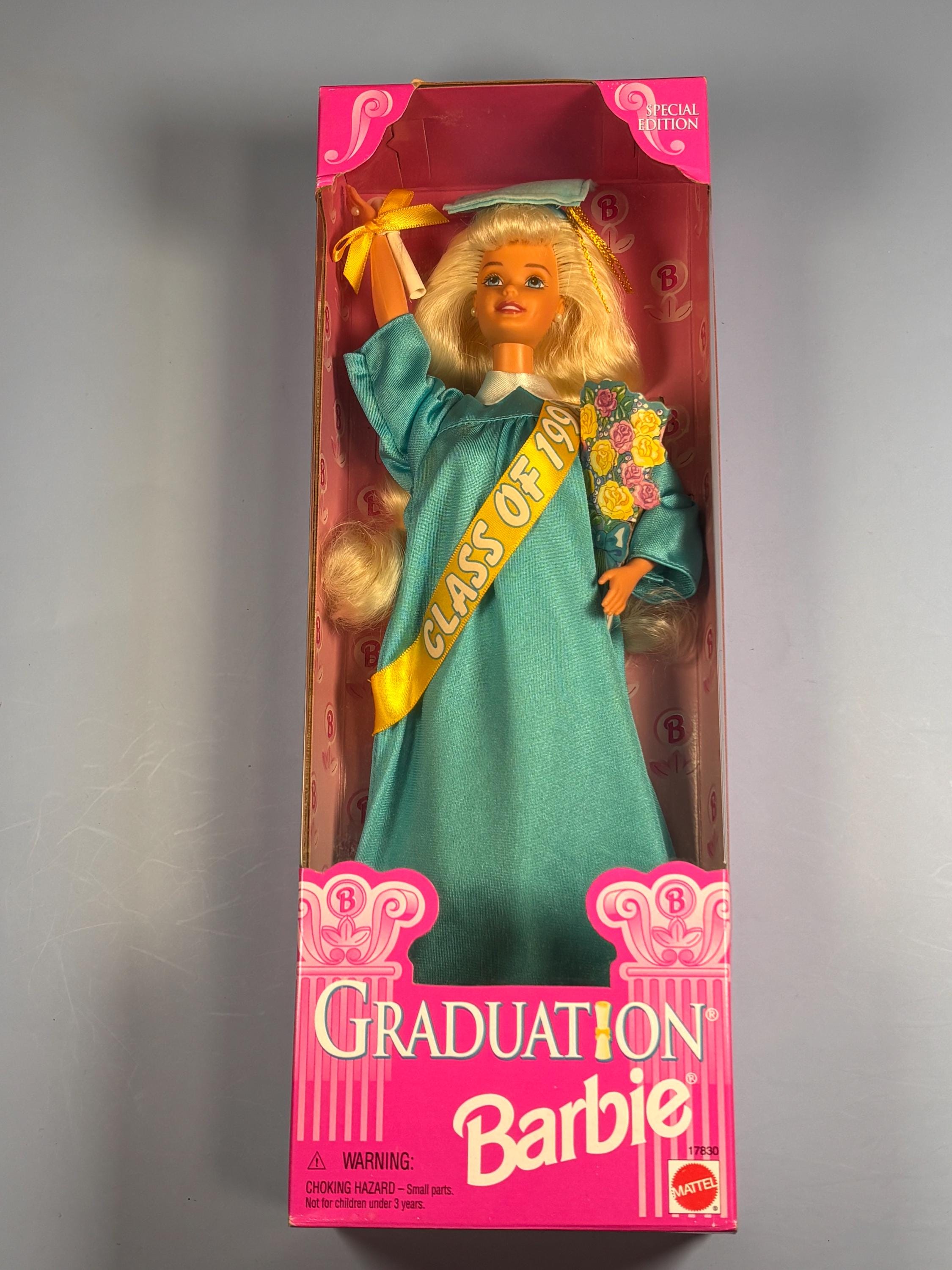 VISIT jaxinabox.com FOR ALL OUR LISTINGS!VTG 1997 Class Of 1998 Graduation Barbie Doll w/Turquoise Robe #17830- New