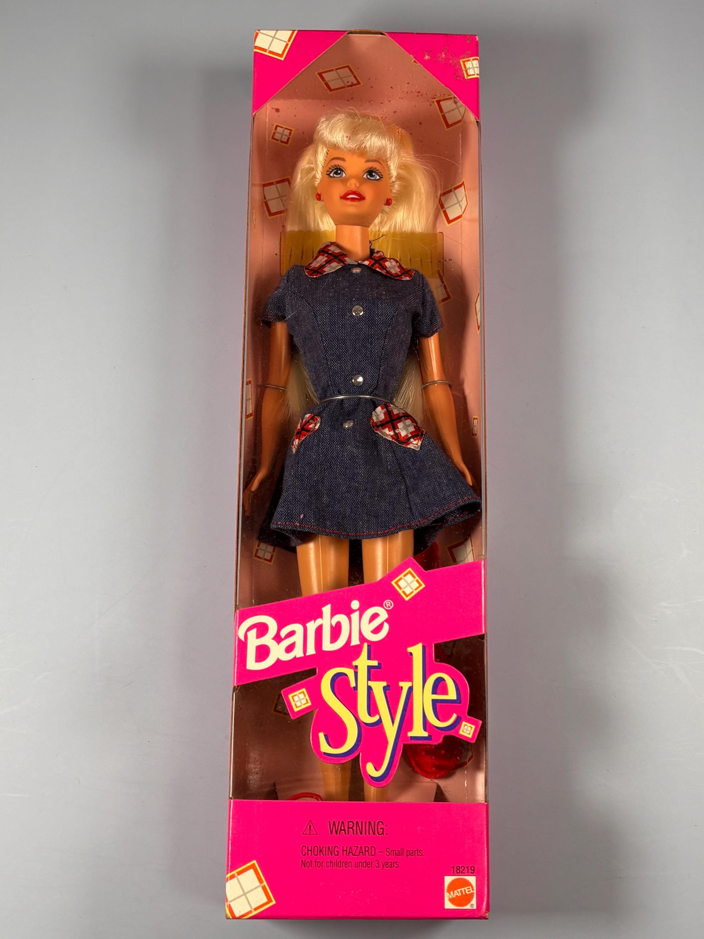 VISIT jaxinabox.com FOR ALL OUR LISTINGS!1997 Mattel Style Barbie #18219 Jean Dress New Vintage
