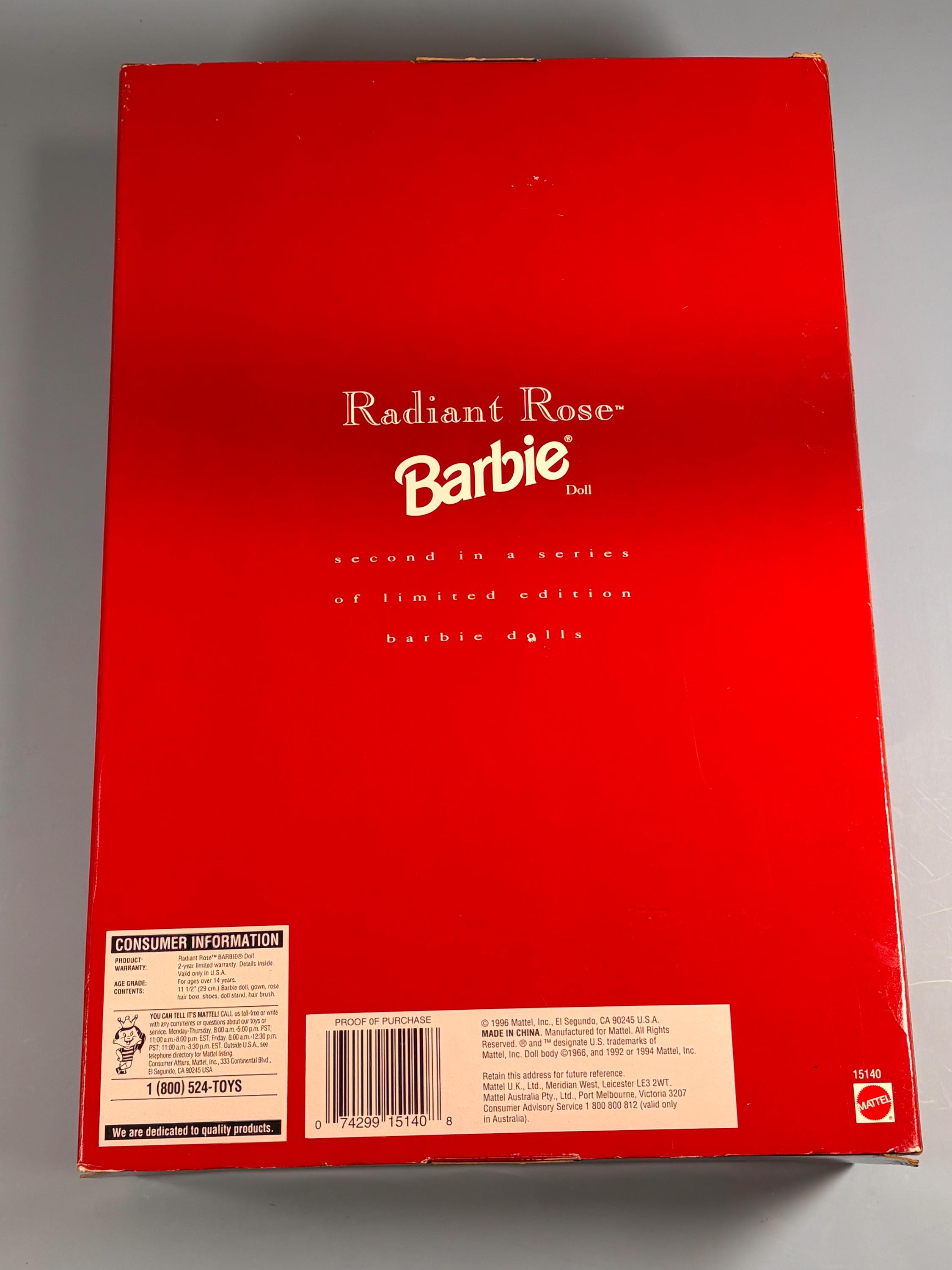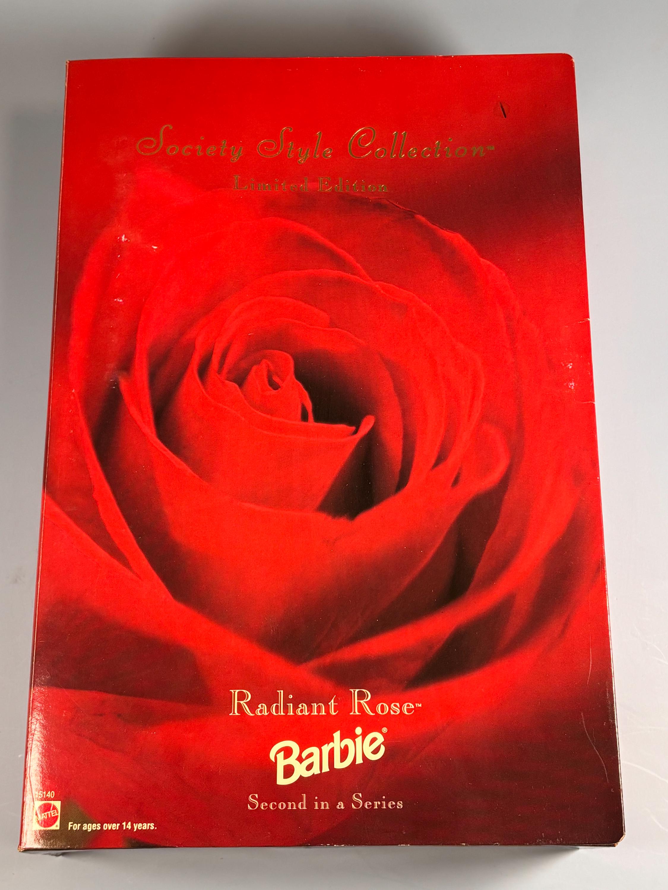 VISIT jaxinabox.com FOR ALL OUR LISTINGS!Radiant Rose Barbie 1996 Society Collection #15140 Red Dress Flowers Limited New