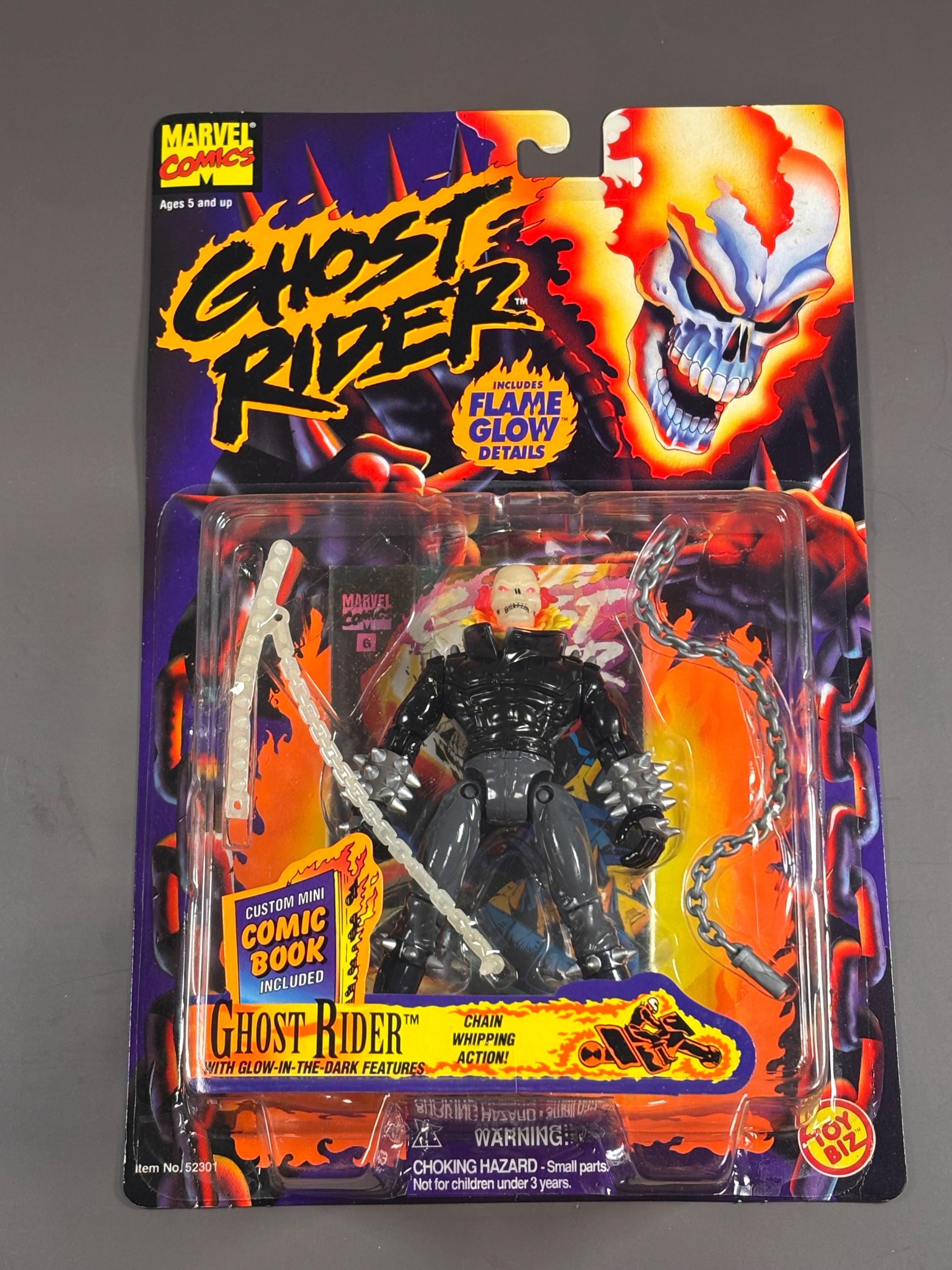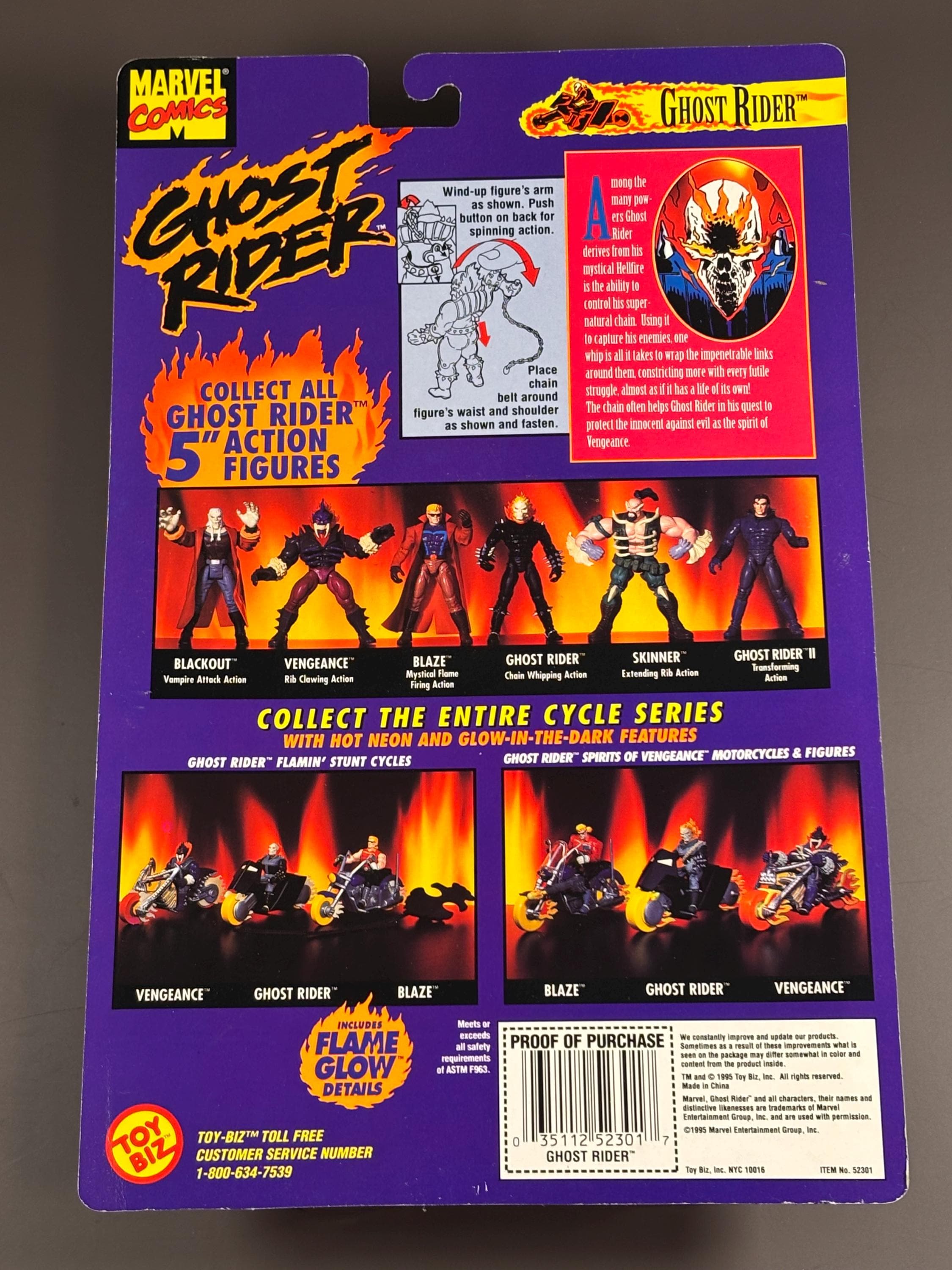 VISIT jaxinabox.com FOR ALL OUR LISTINGS!ToyBiz Ghost Rider 5" Figure 1995 Chain Whipping Action Flame Glow-in-the-Dark