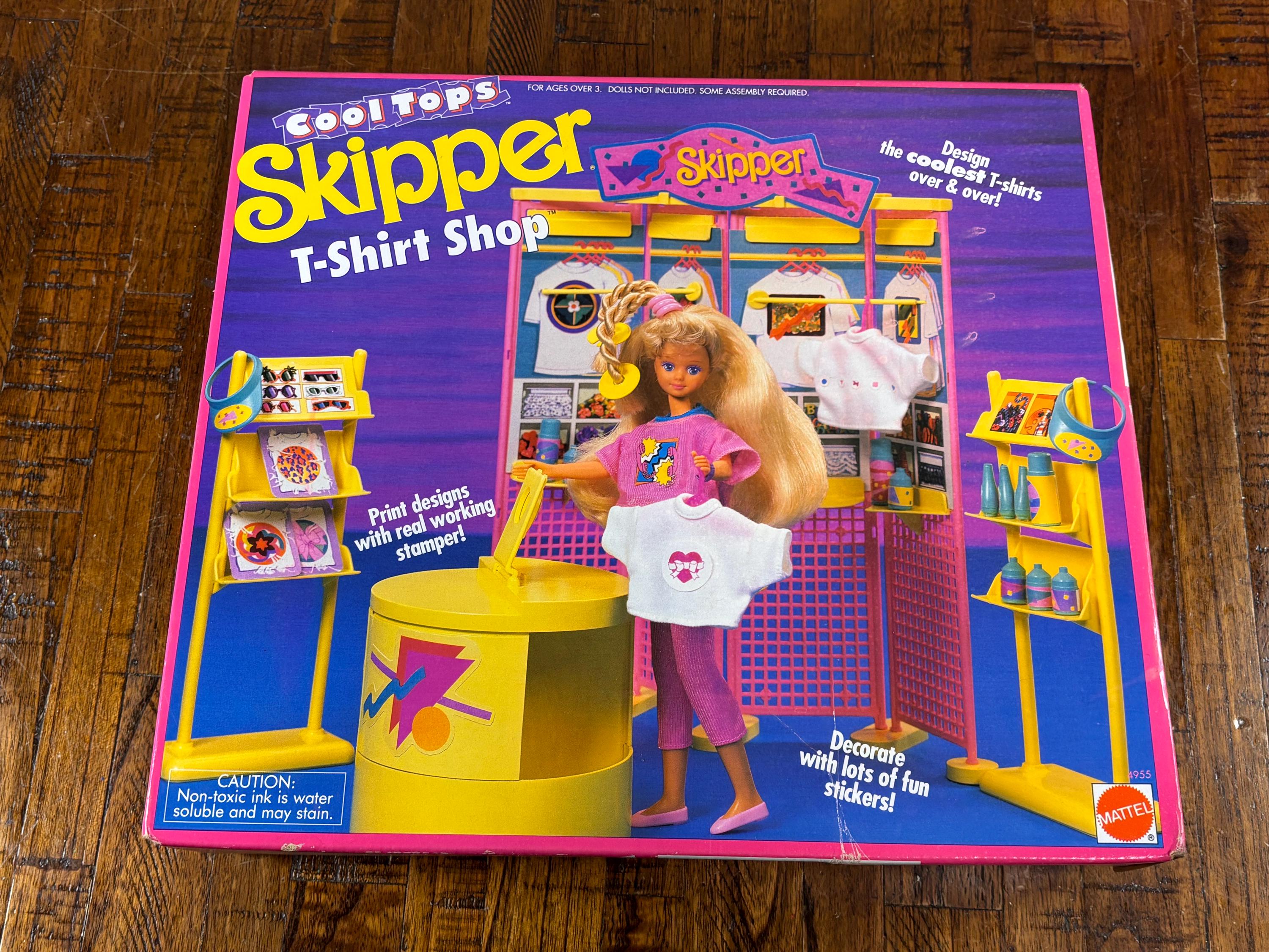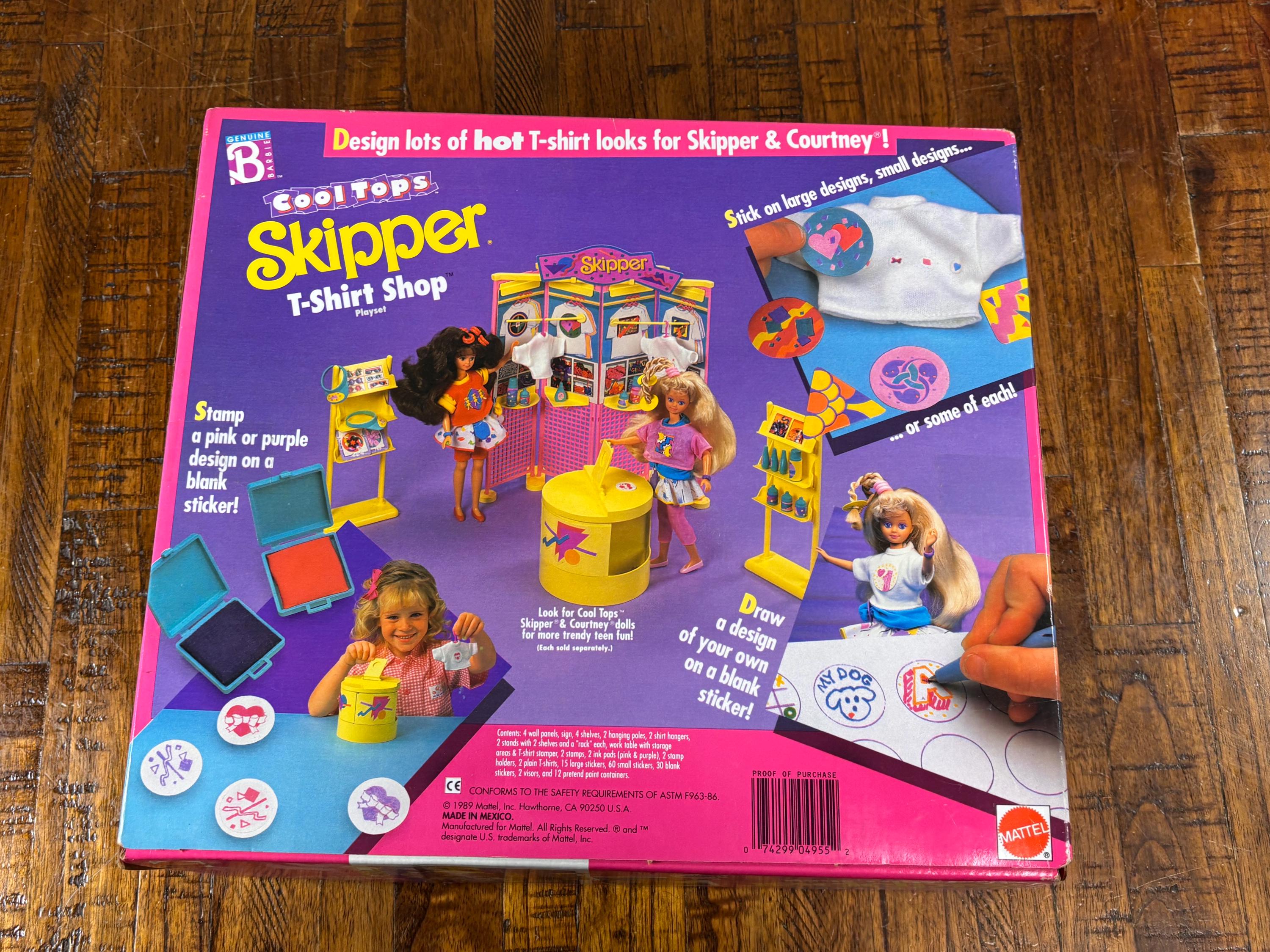 VISIT jaxinabox.com FOR ALL OUR LISTINGS!1989 Barbie Cool Tops Skipper T Shirt Shop New Sealed Box Fashion Doll 4955