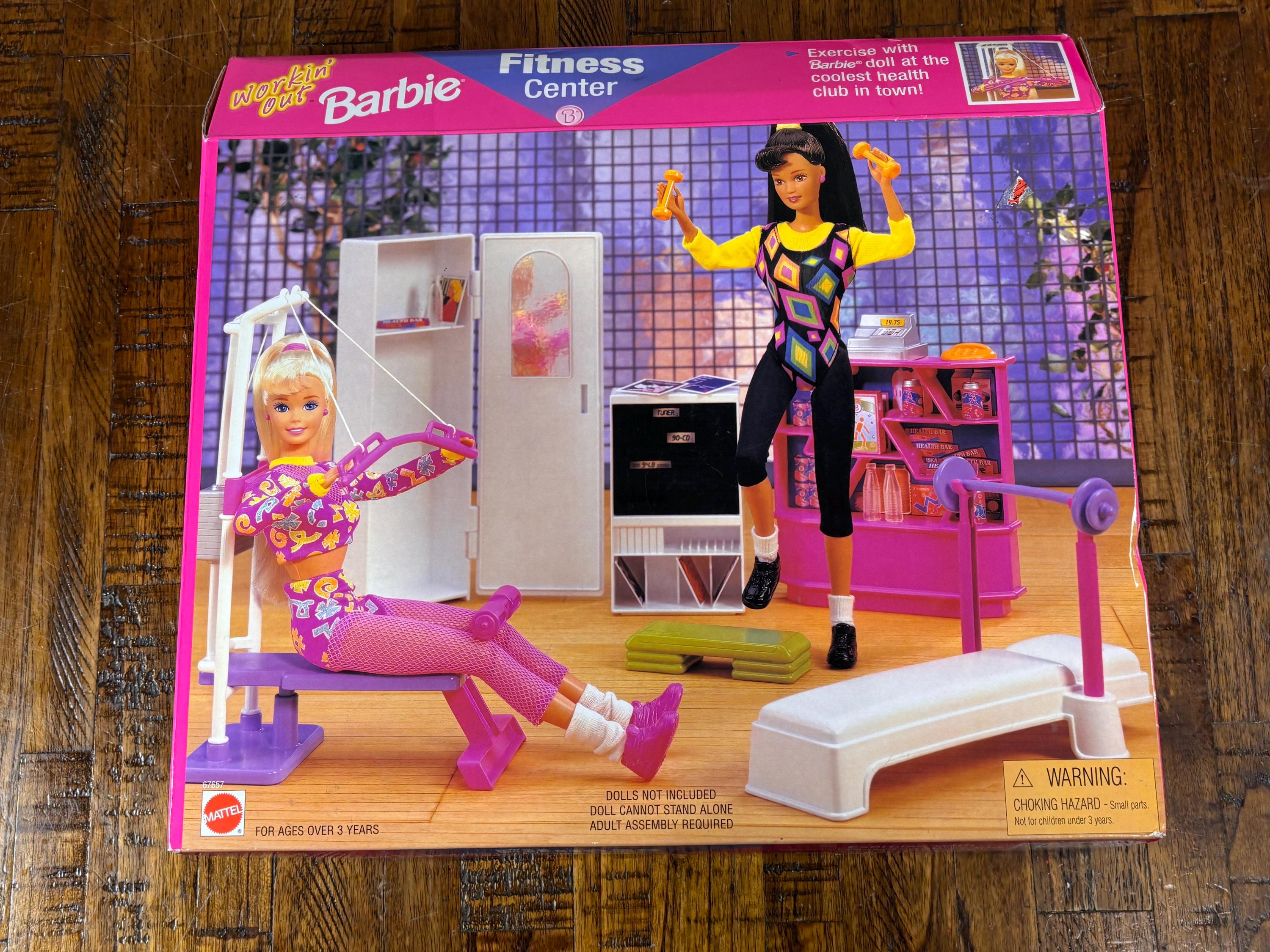 VISIT jaxinabox.com FOR ALL OUR LISTINGS!1997 Barbie WORKIN' OUT Fitness Center 67657 Mattel Doll Play Set Gym New