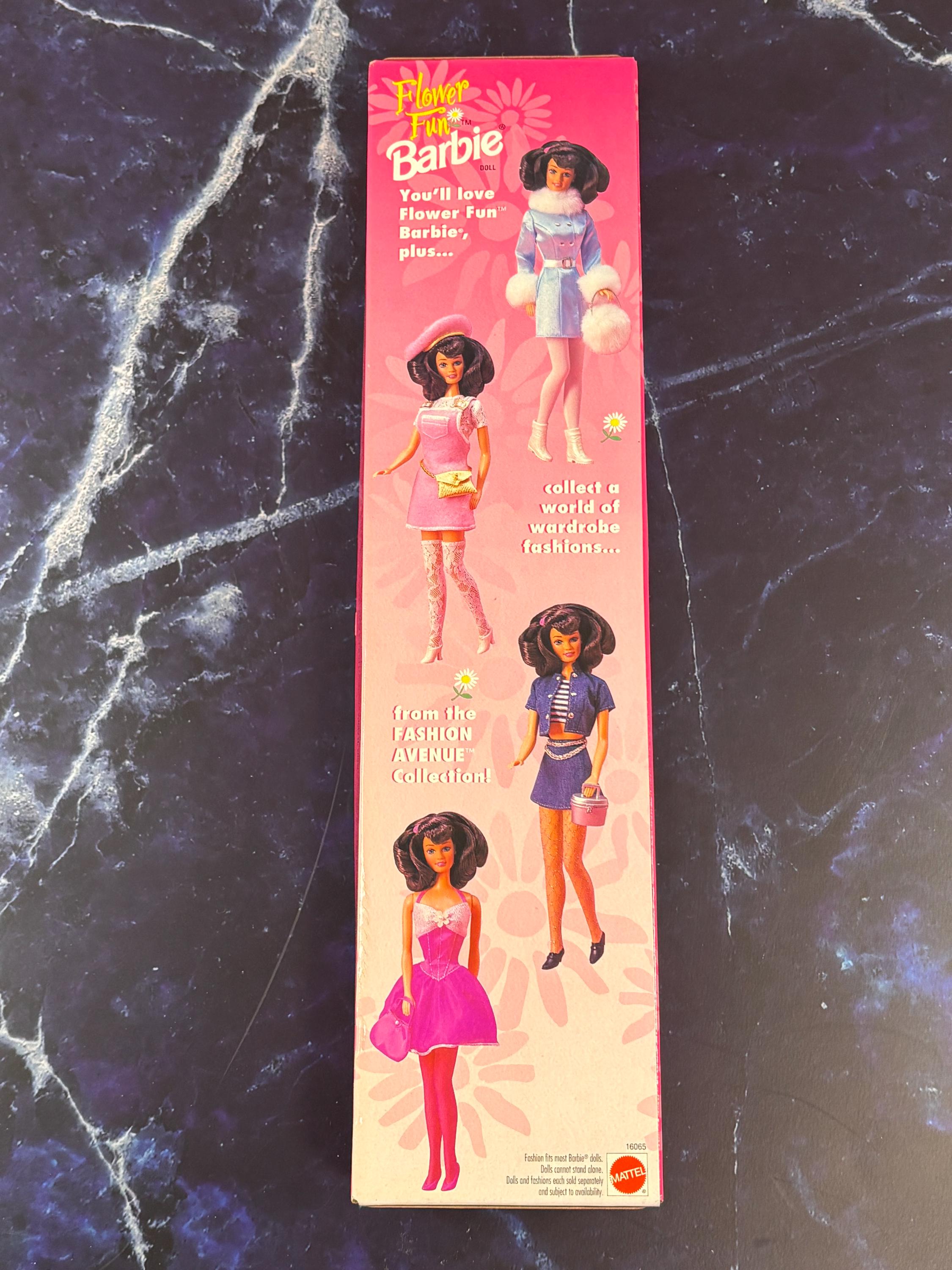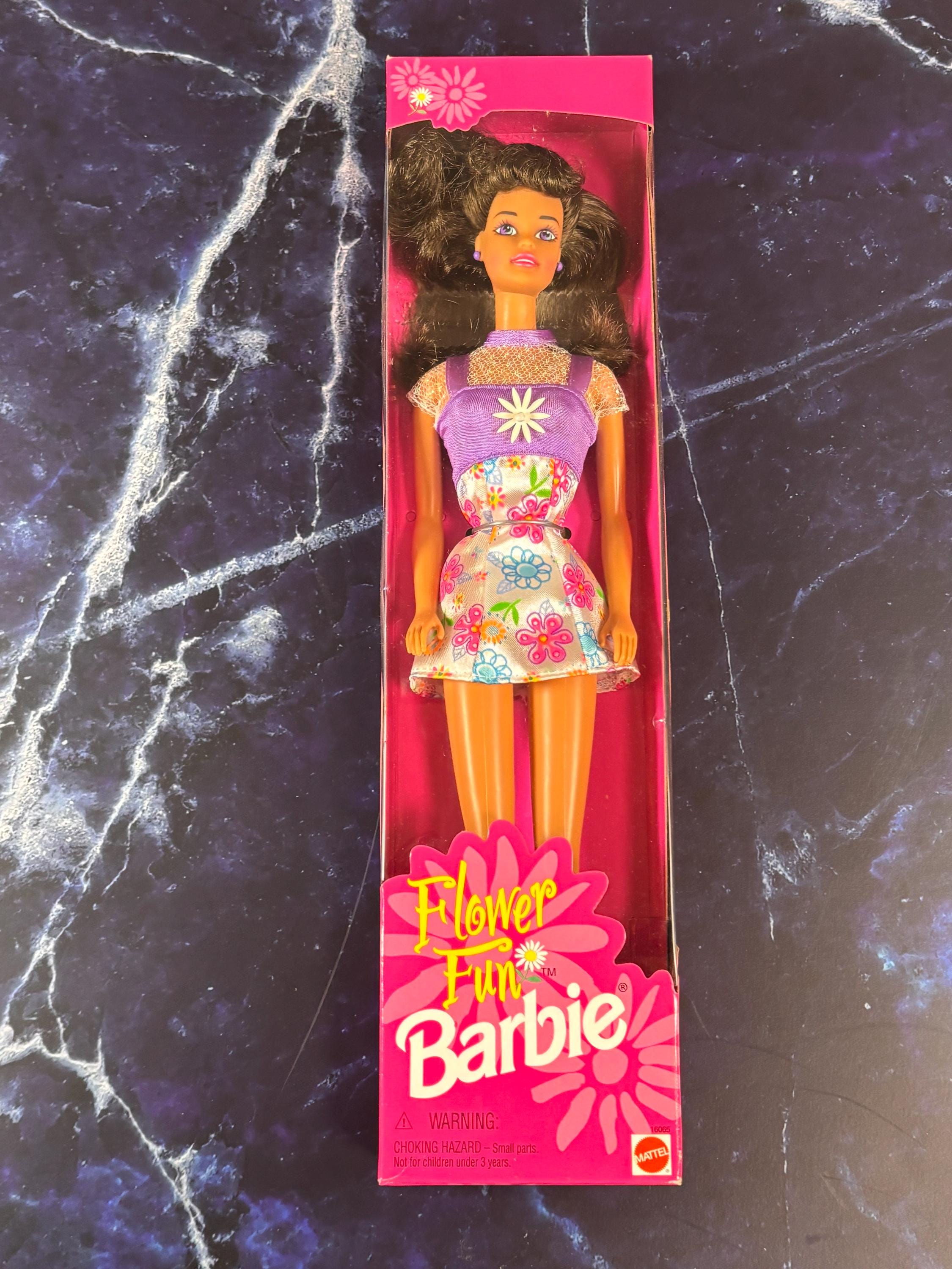 VISIT jaxinabox.com FOR ALL OUR LISTINGS!Vintage 1996 Flower Fun Barbie Brunette Doll Purple Mattel #16065 New Teresa