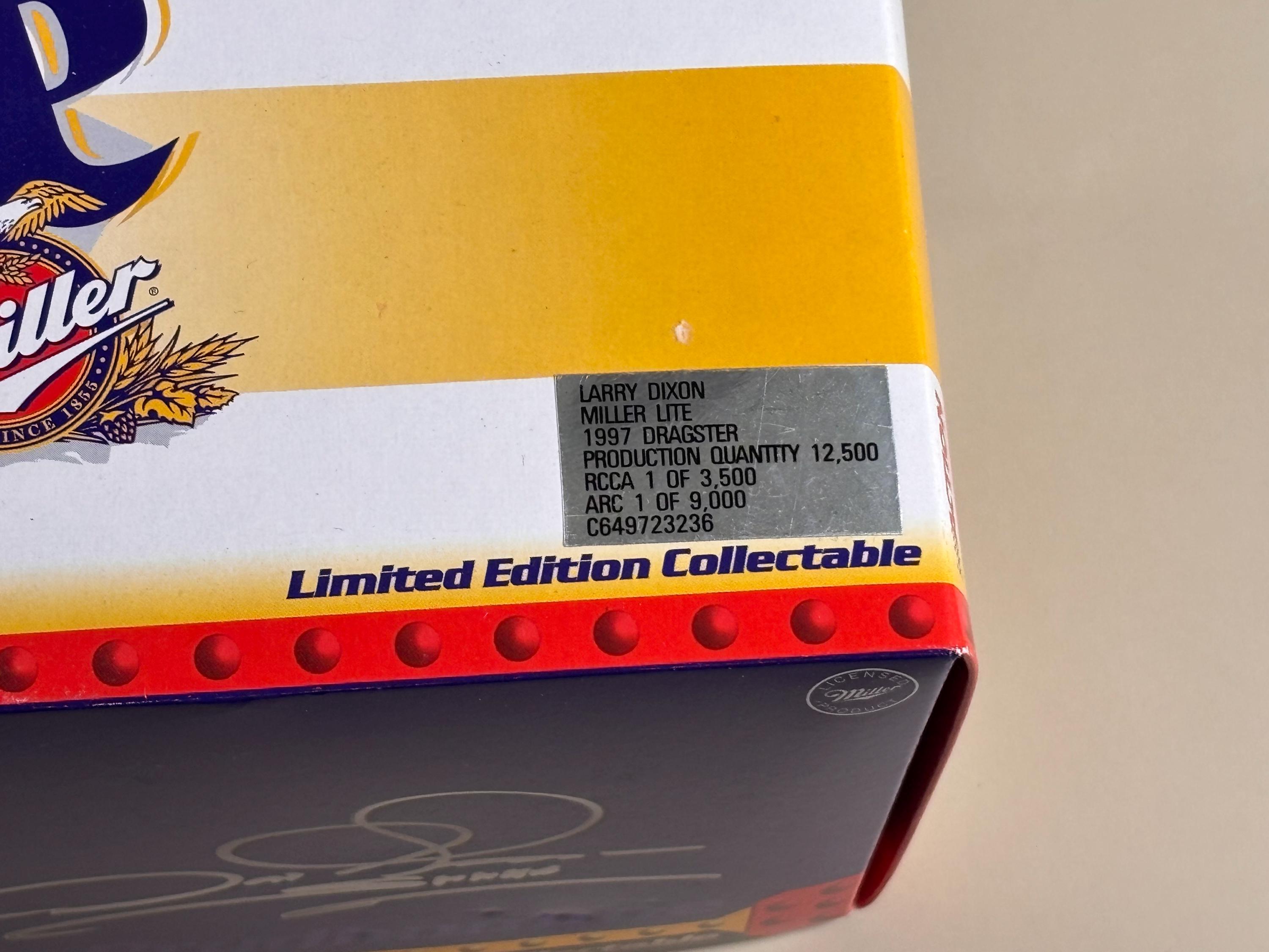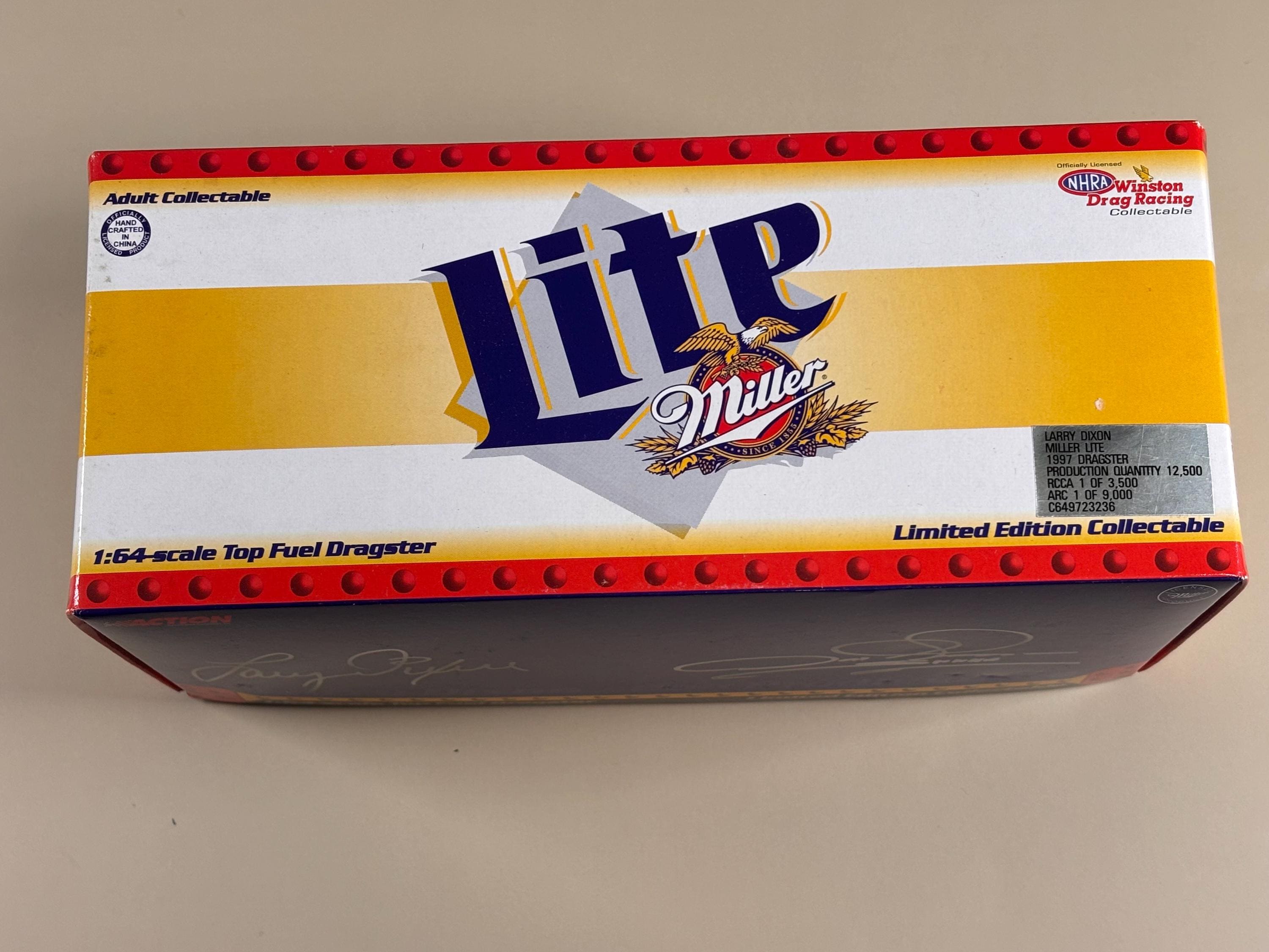 VISIT jaxinabox.com FOR ALL OUR LISTINGS!Larry Dixon Miller Lite 1997 Dragster 1:64 scale diecast New NASCAR Action Race