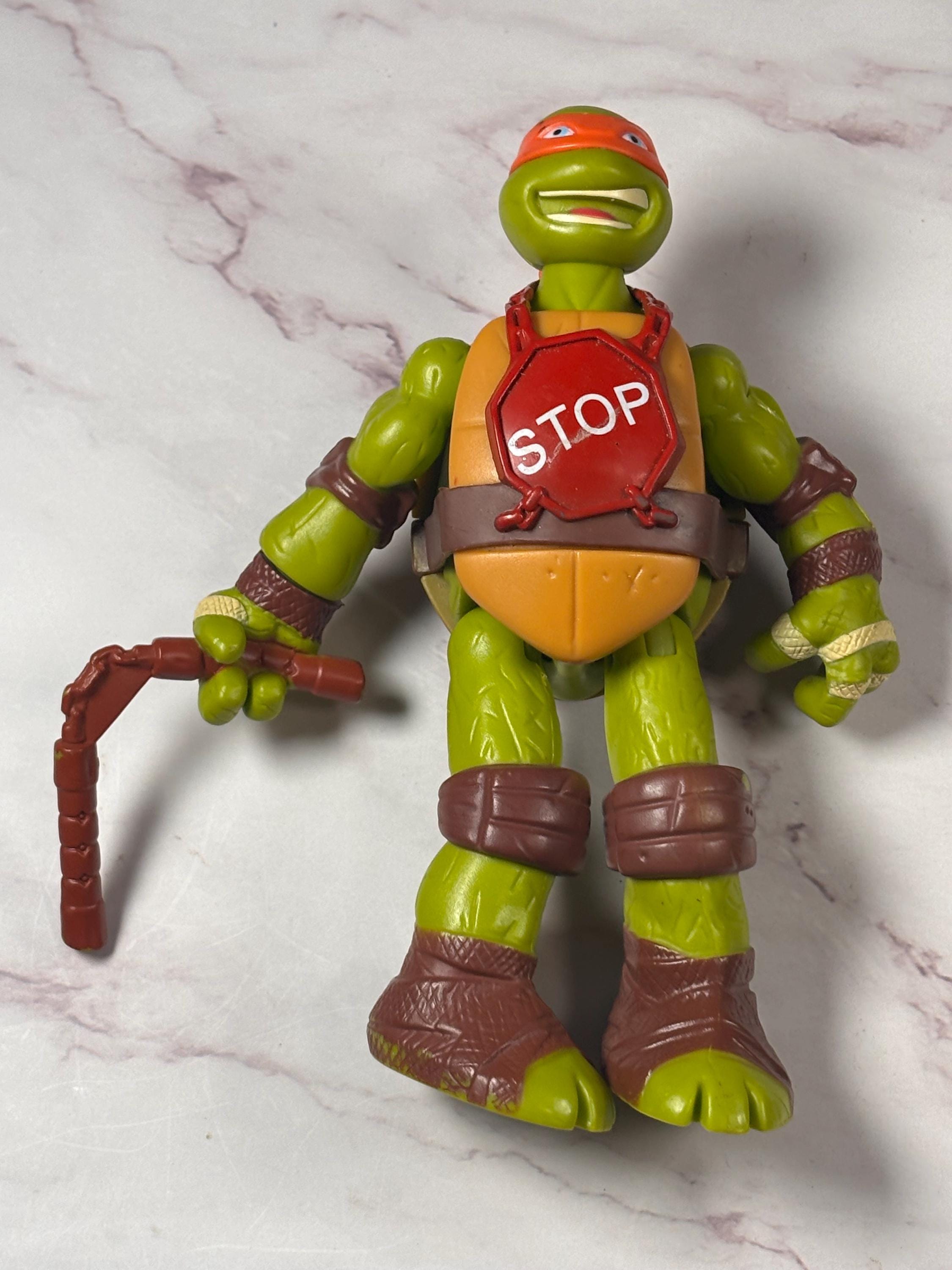 VISIT jaxinabox.com FOR ALL OUR LISTINGS!2014 Playmates Teenage Mutant Ninja Turtles TMNT Michelangelo Weapon Stop figure 6”
