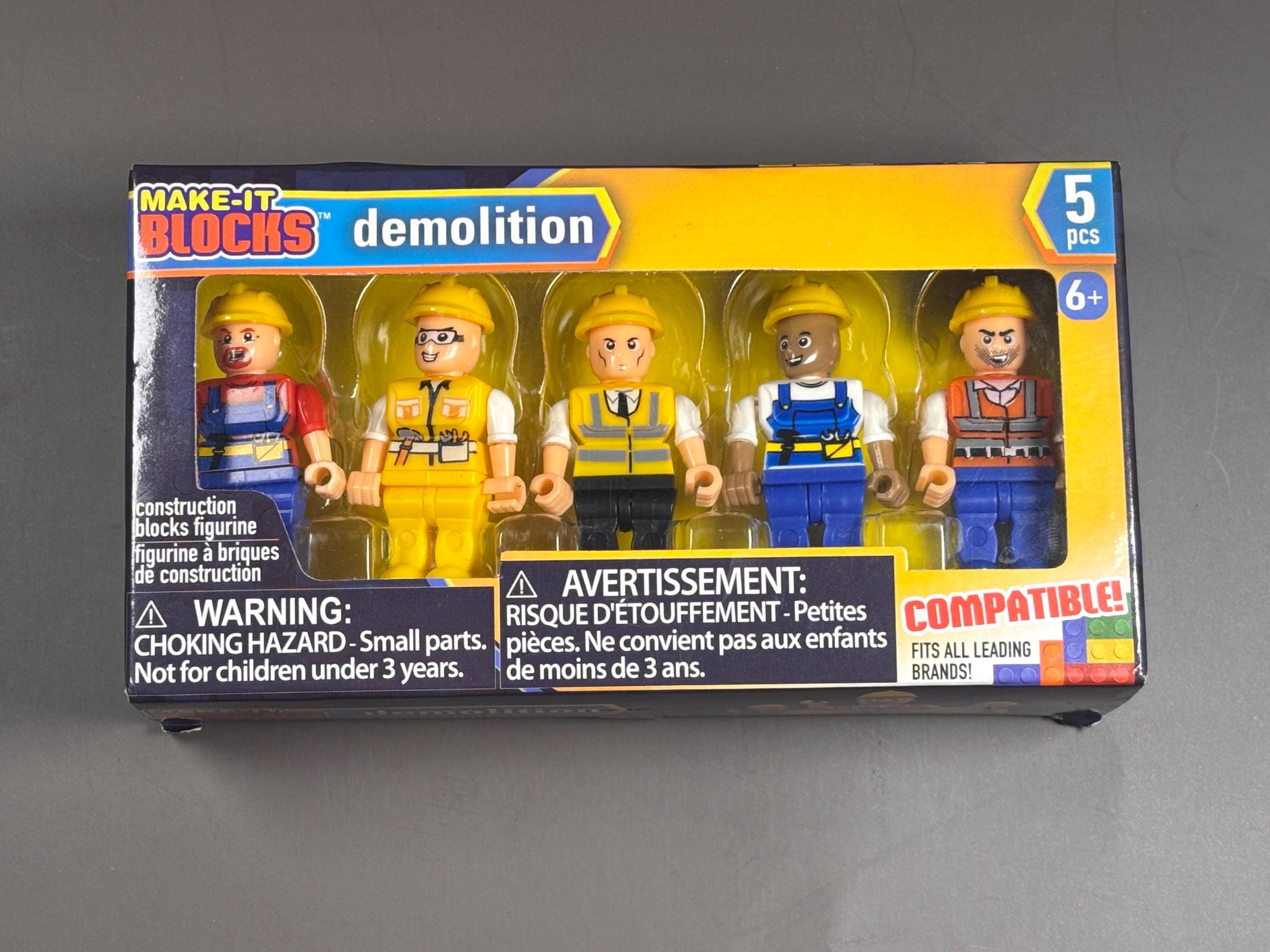 VISIT jaxinabox.com FOR ALL OUR LISTINGS!Make-It Blocks "Demolition" 5-piece set of construction block figurines not Lego new