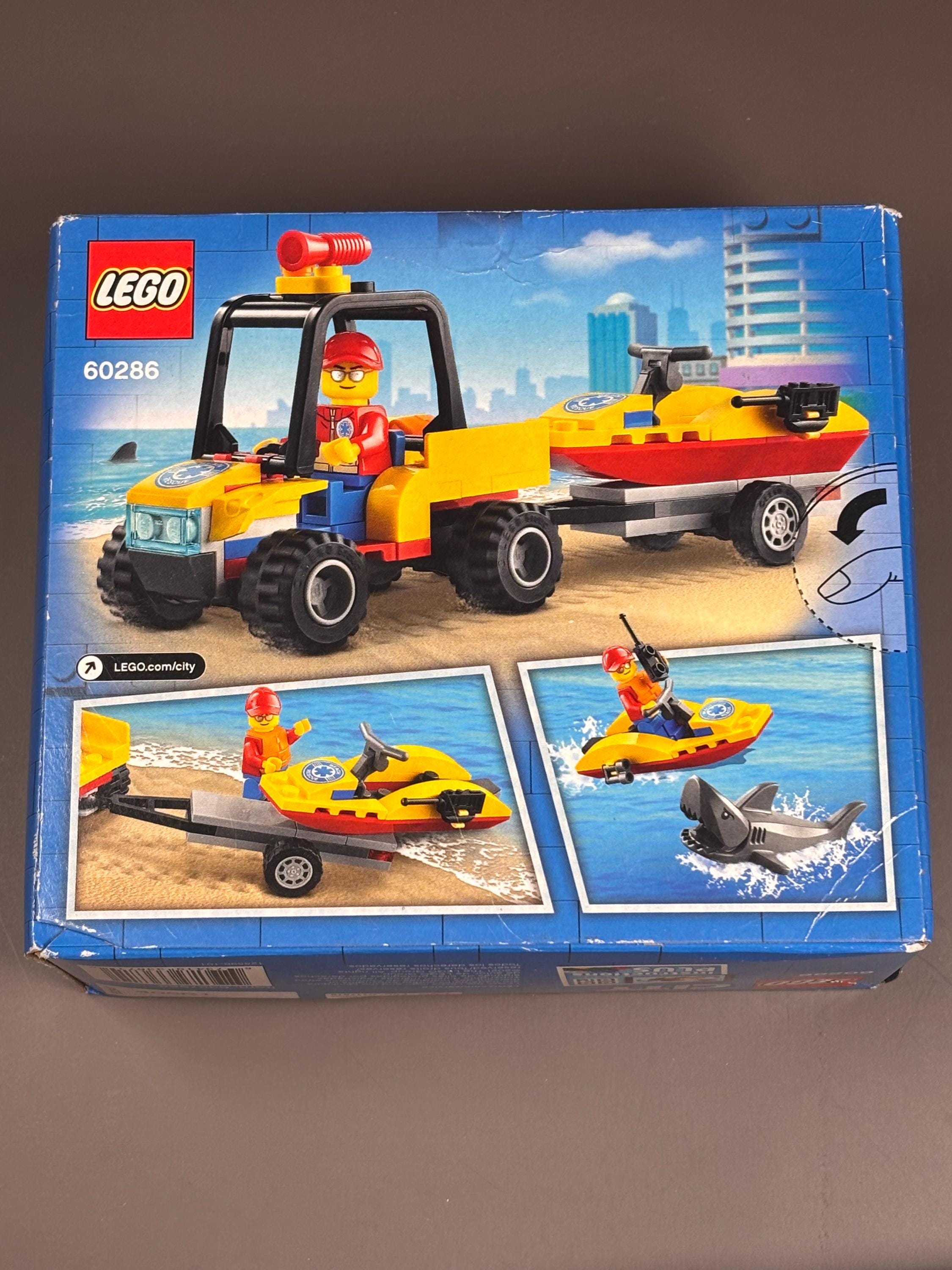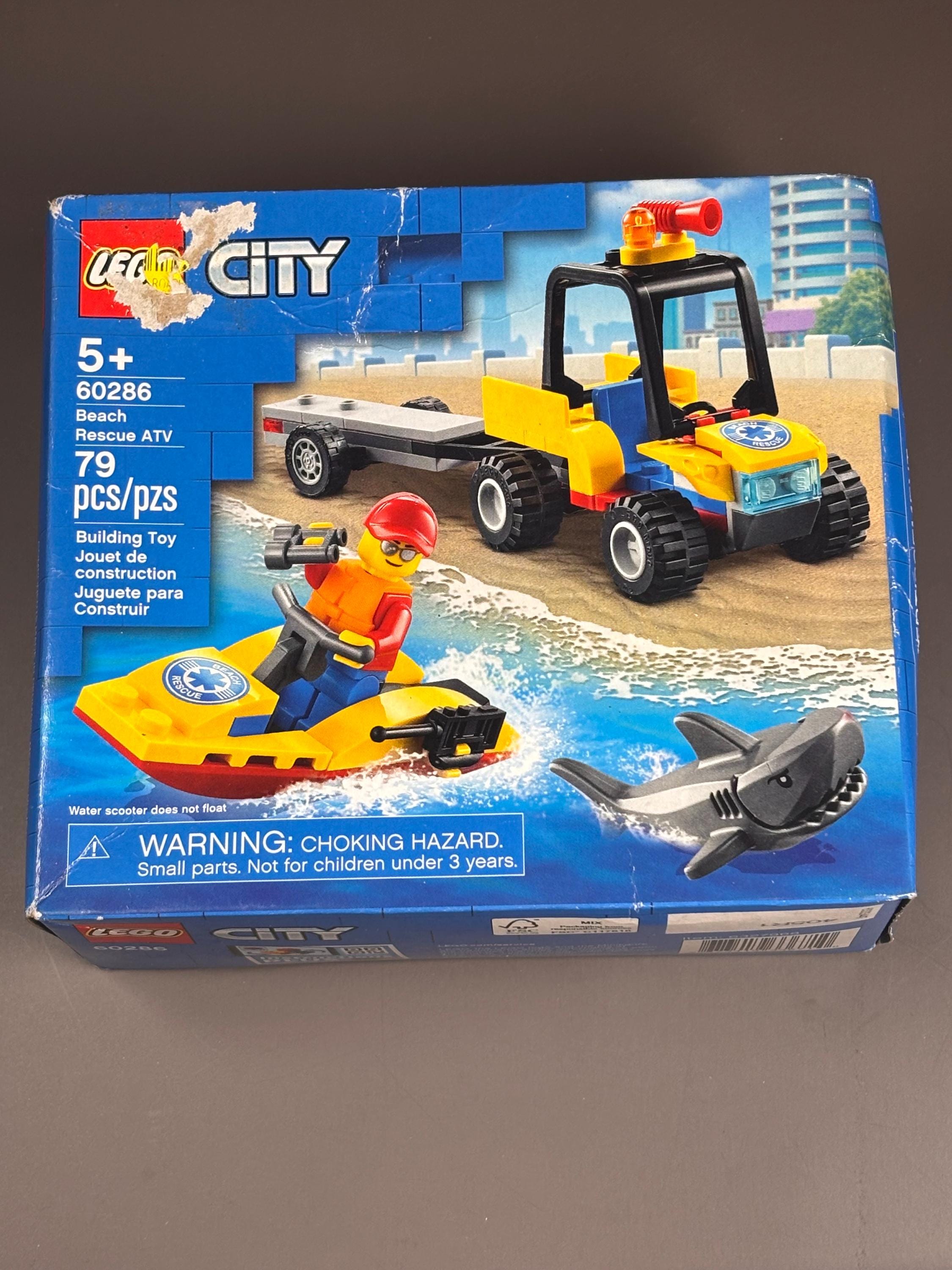 VISIT jaxinabox.com FOR ALL OUR LISTINGS!LEGO City Beach Rescue ATV Set 60286 79 pcs Minifigure Jet Ski Shark 5+