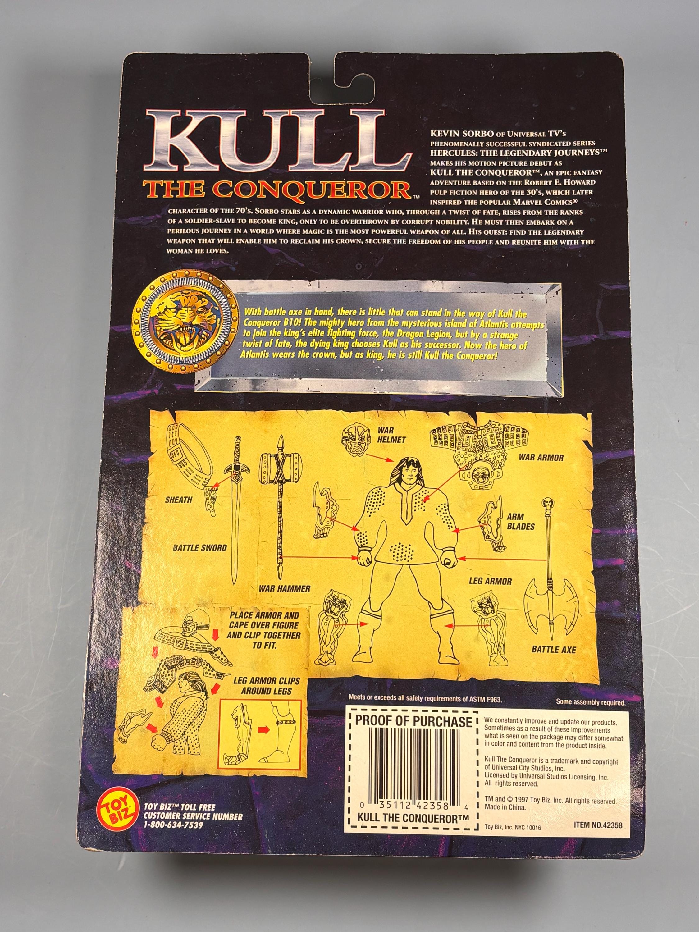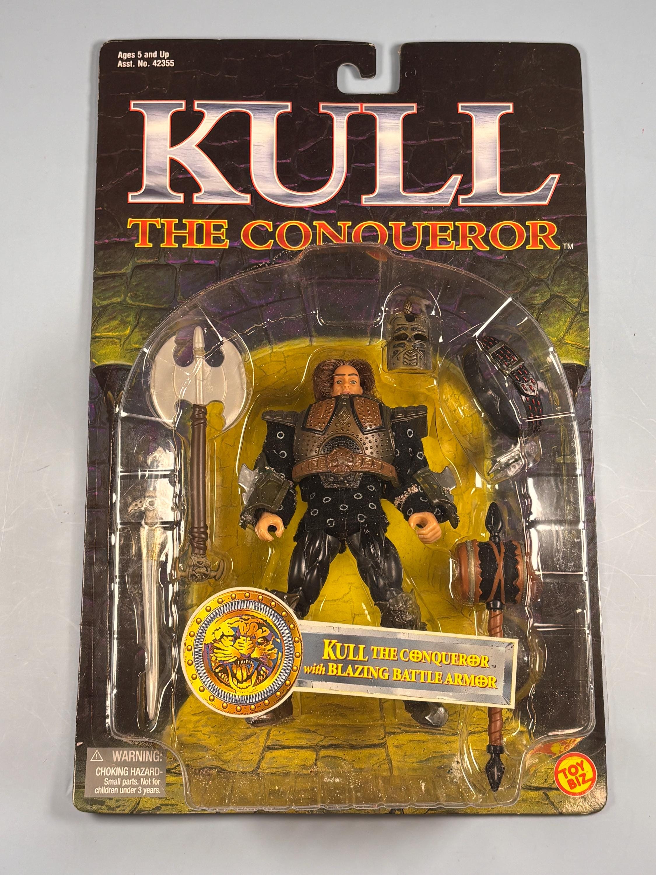 VISIT jaxinabox.com FOR ALL OUR LISTINGS!Vintage 1997 Kull the Conqueror Action Figure with Blazing Battle Armour 5” New Toy Biz