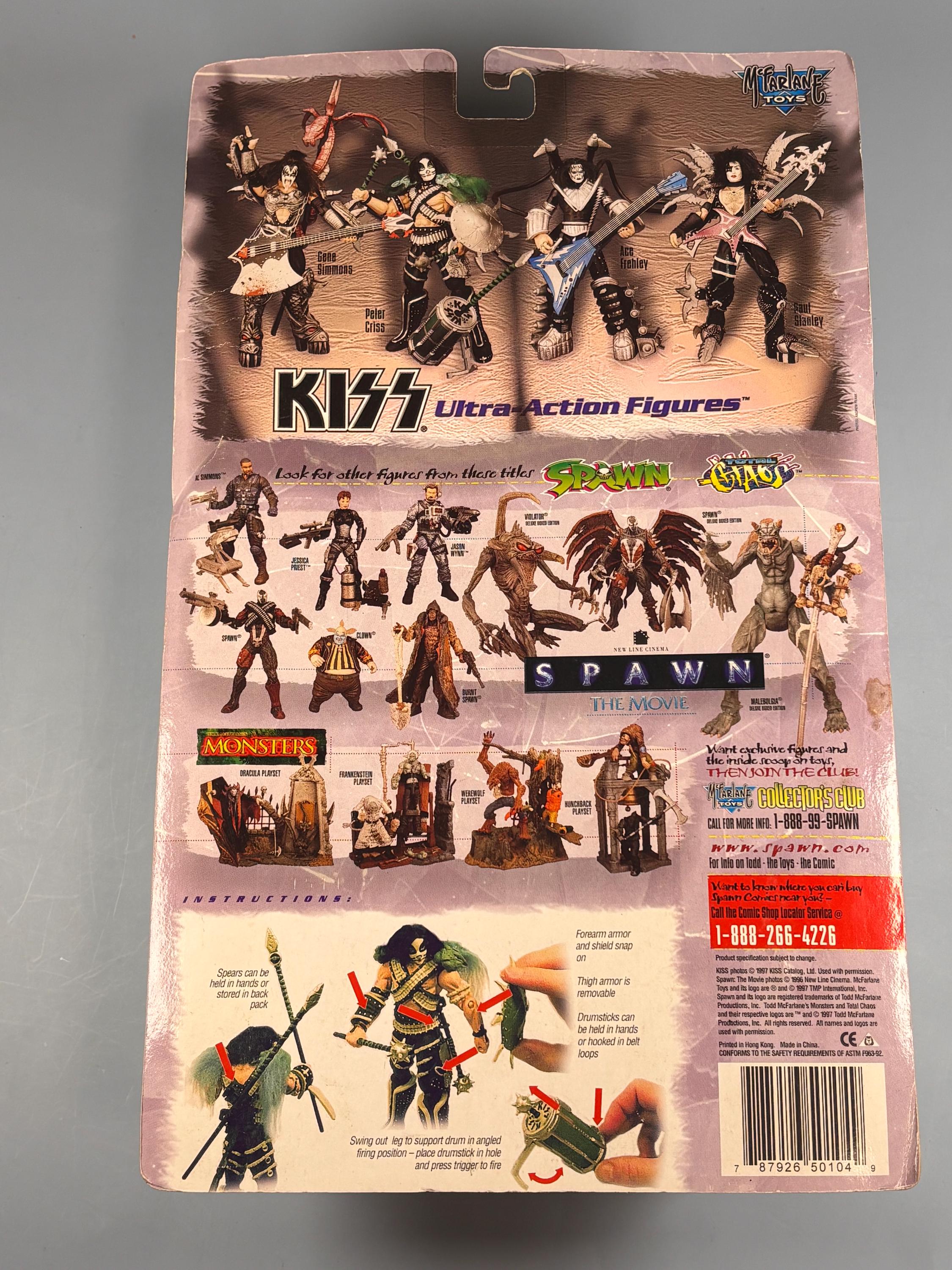 VISIT jaxinabox.com FOR ALL OUR LISTINGS!Mcfarlane Toys Kiss Peter Criss 7" Ultra-Action Figure with Accessories 1997 New