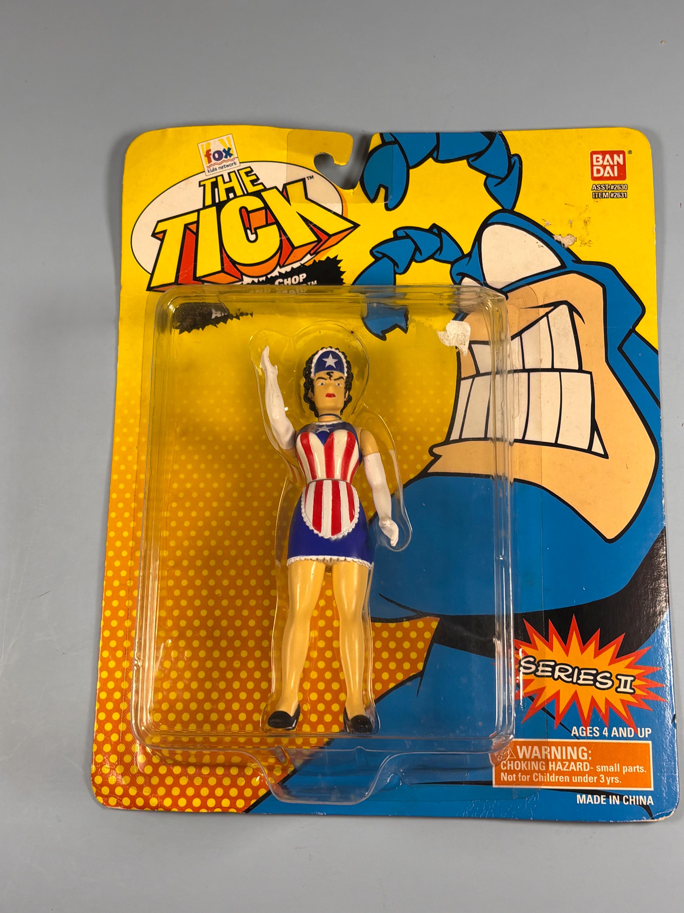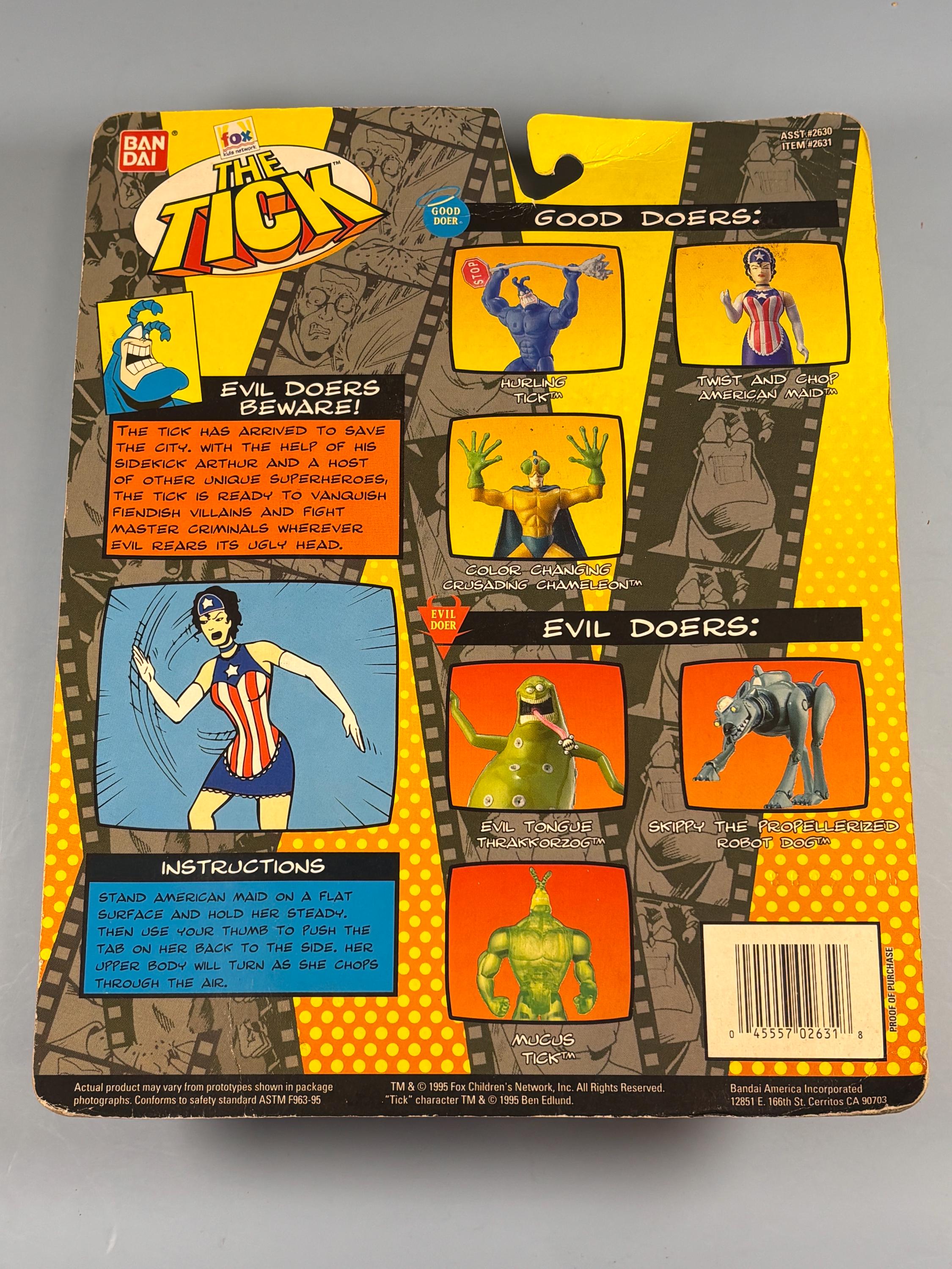 VISIT jaxinabox.com FOR ALL OUR LISTINGS!1995 The Tick - Twist and Chop American Maid Action Figure BanDai 6” New