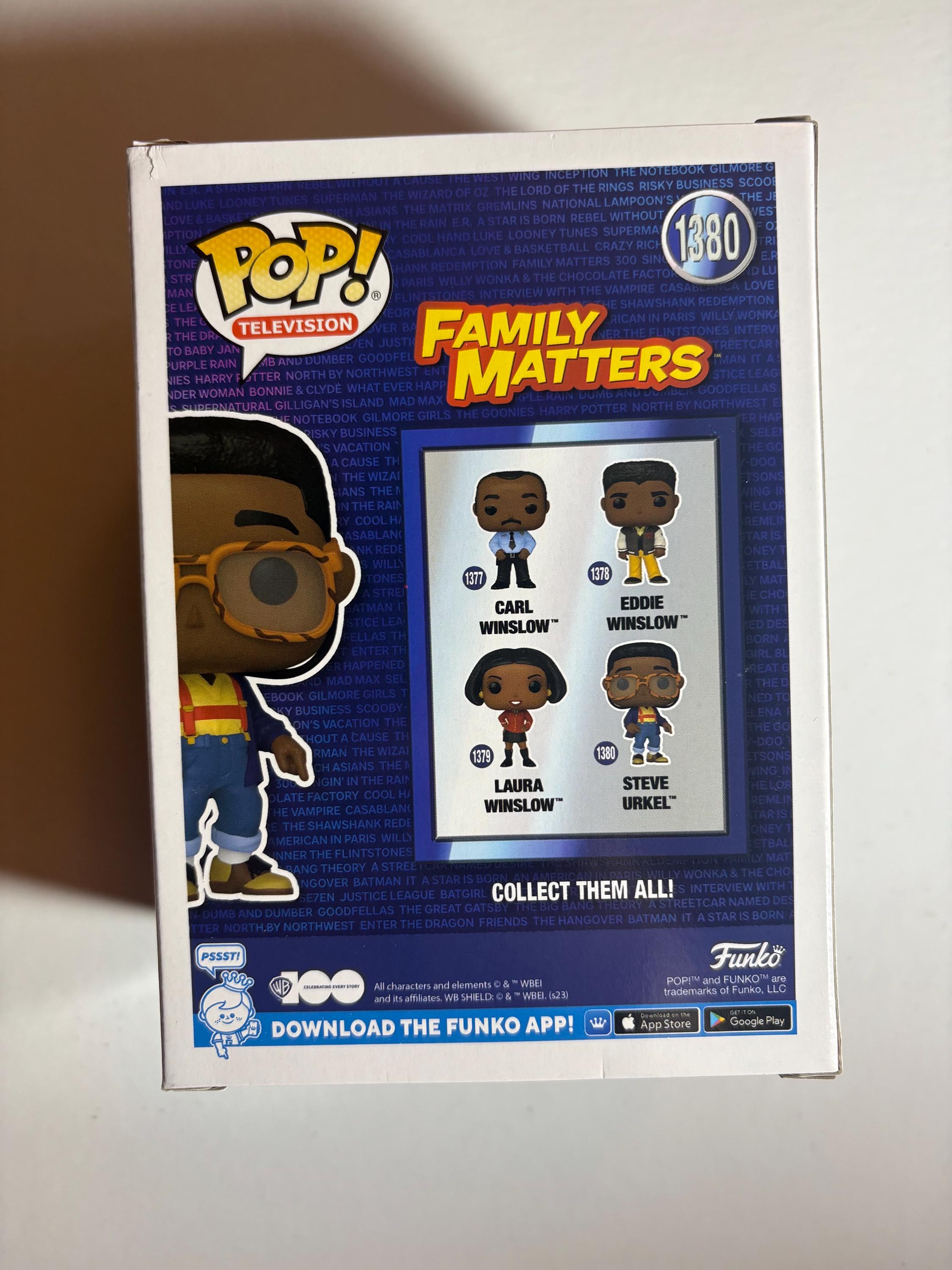VISIT jaxinabox.com FOR ALL OUR LISTINGS!POP! Funko Television WB 100 Celebrating Every Story #1380 Steve Urkel Vinyl Figure New in Box